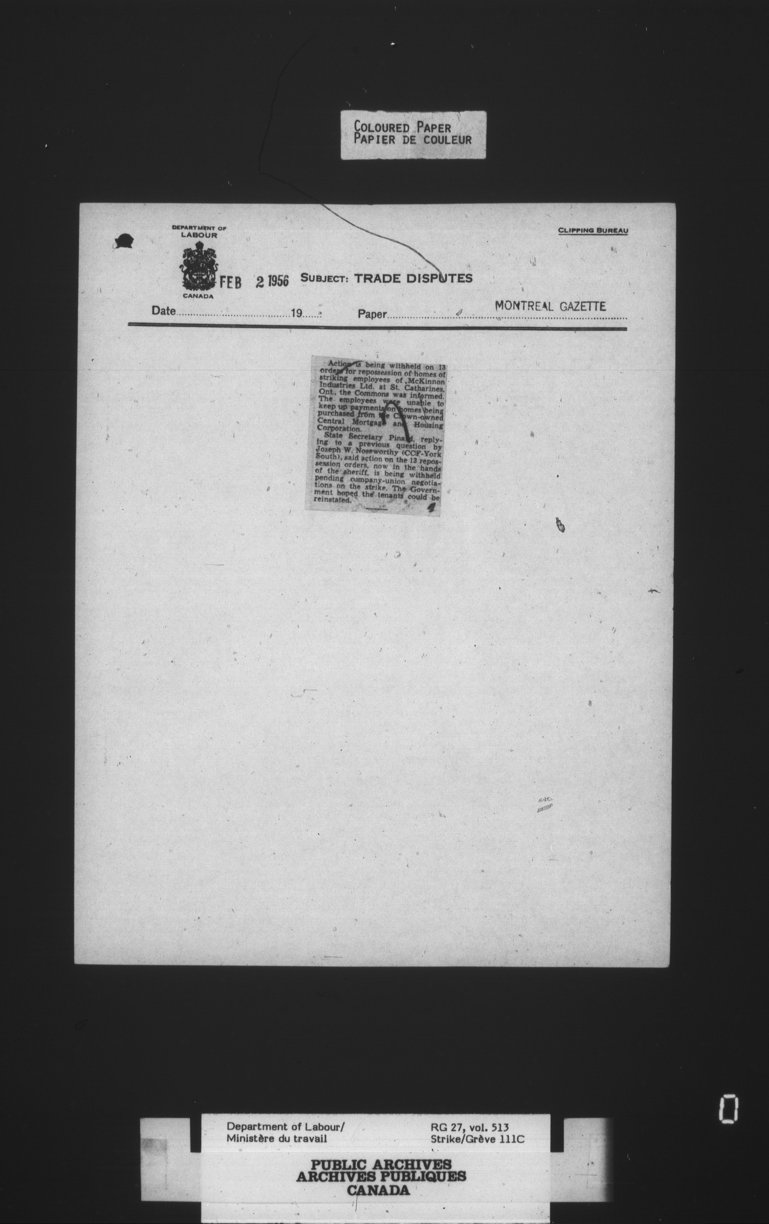 Department of Labour, Economics and Research Branch : Strikes and lockout files - 4132