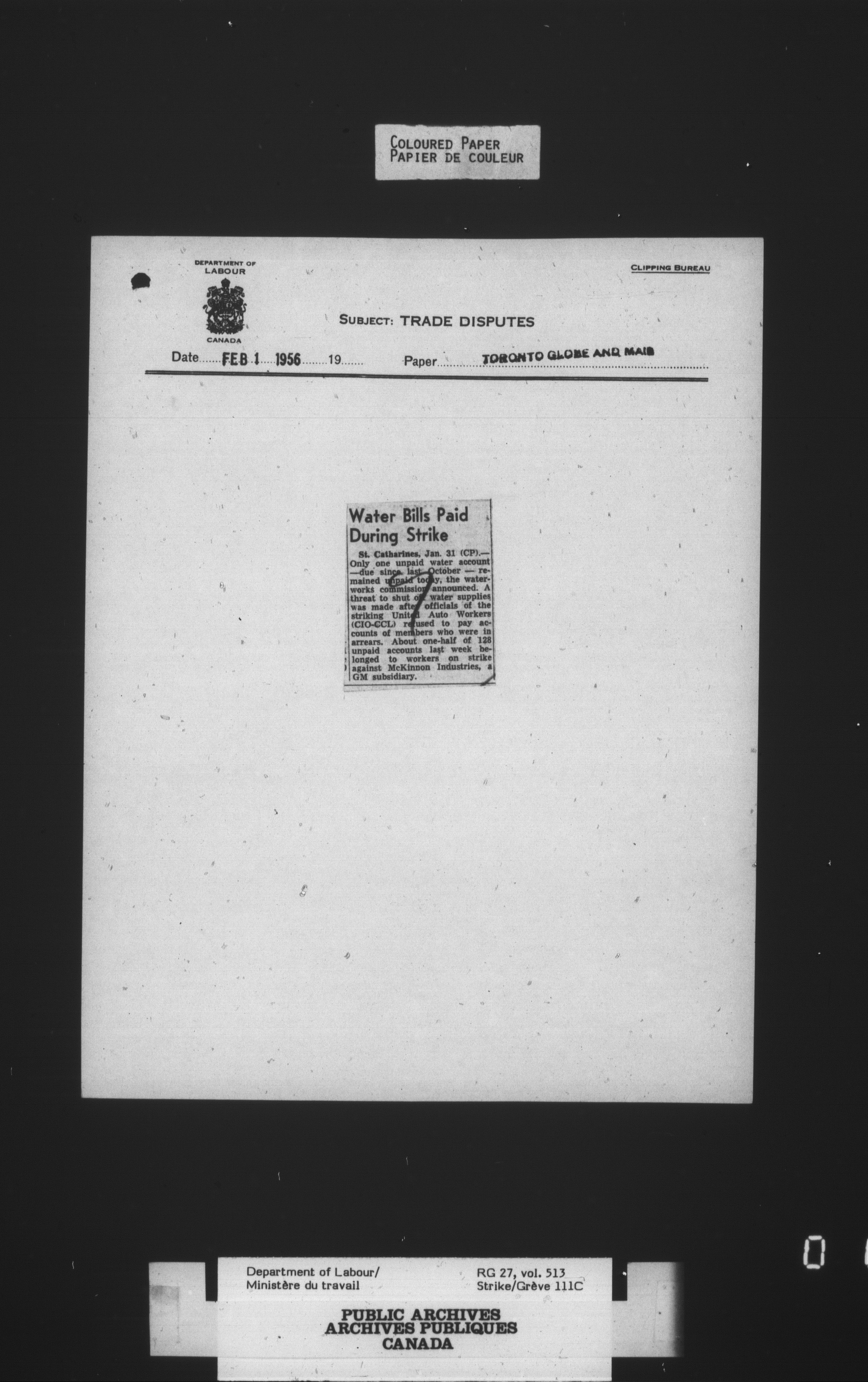 Department of Labour, Economics and Research Branch : Strikes and lockout files - 4132