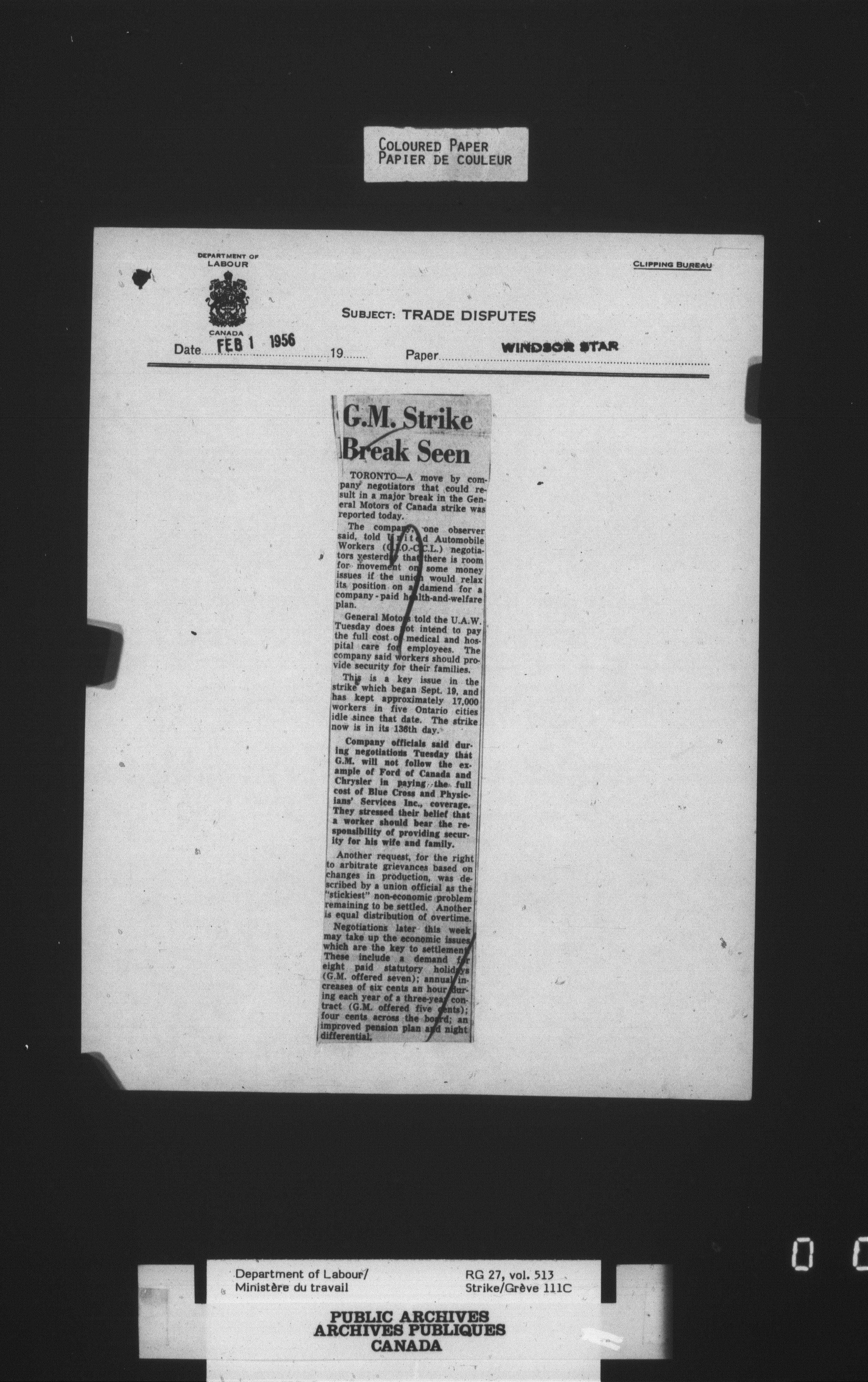 Department of Labour, Economics and Research Branch : Strikes and lockout files - 4132