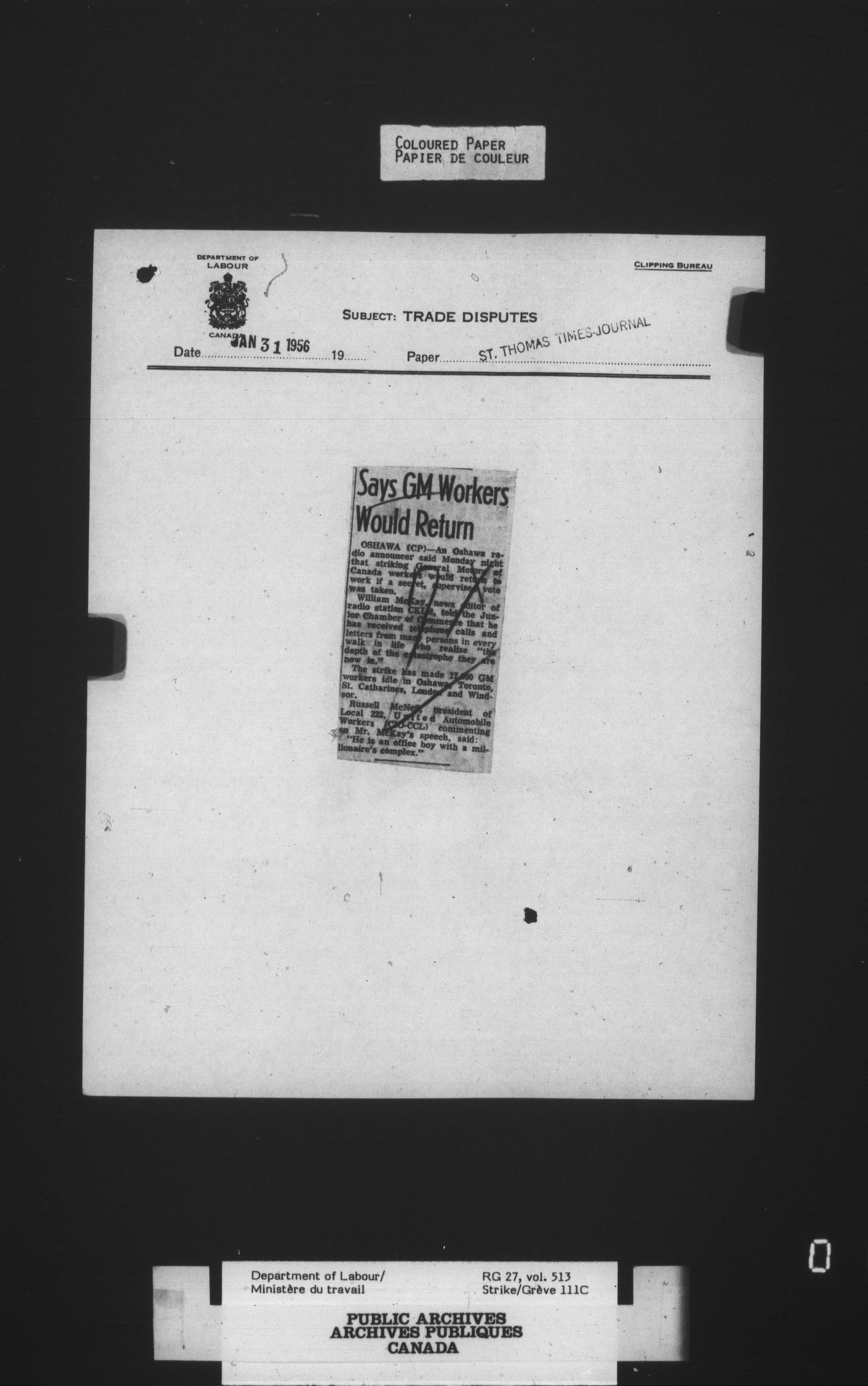 Department of Labour, Economics and Research Branch : Strikes and lockout files - 4132