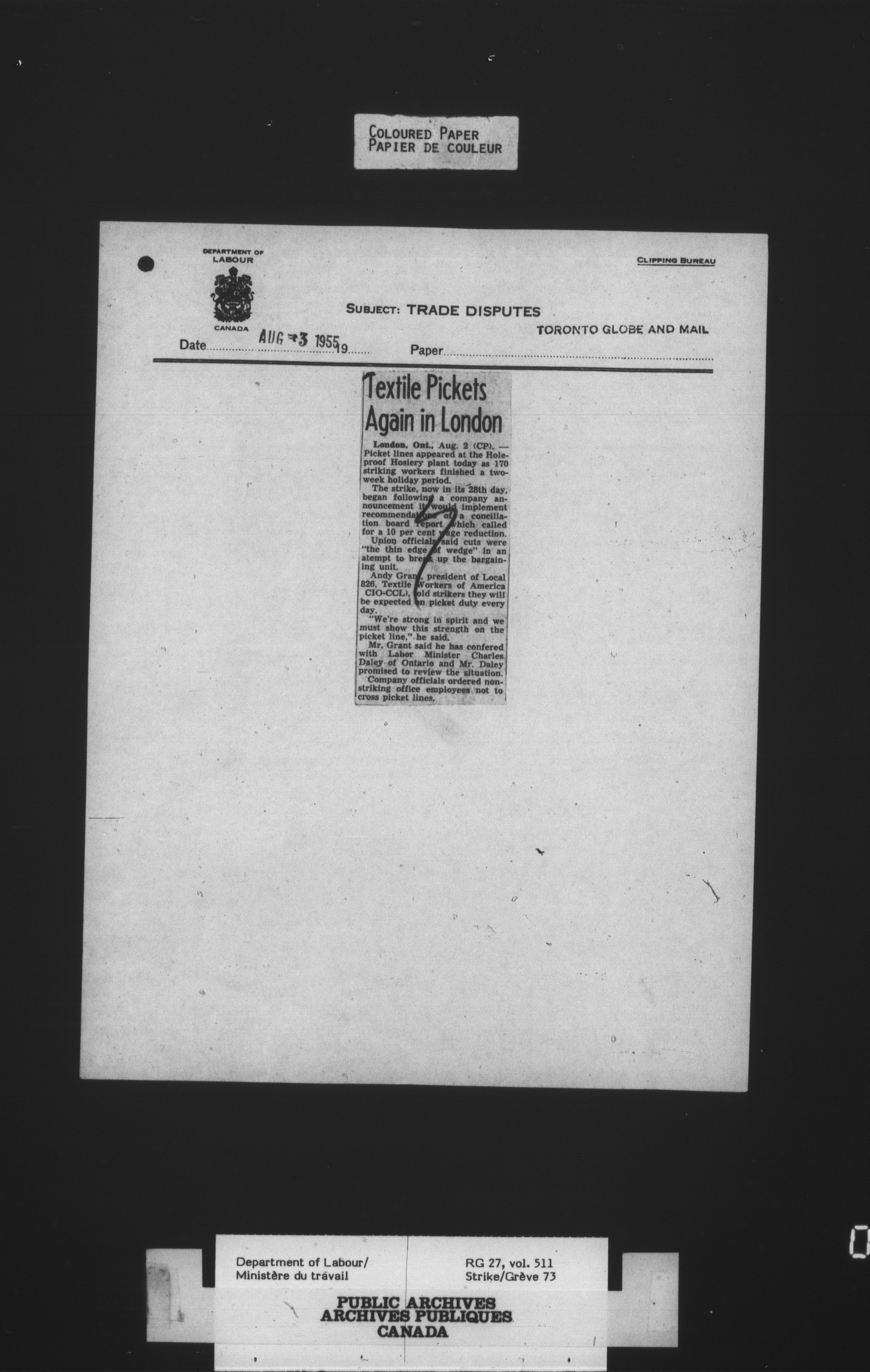 Department of Labour, Economics and Research Branch : Strikes and lockout files - 4132