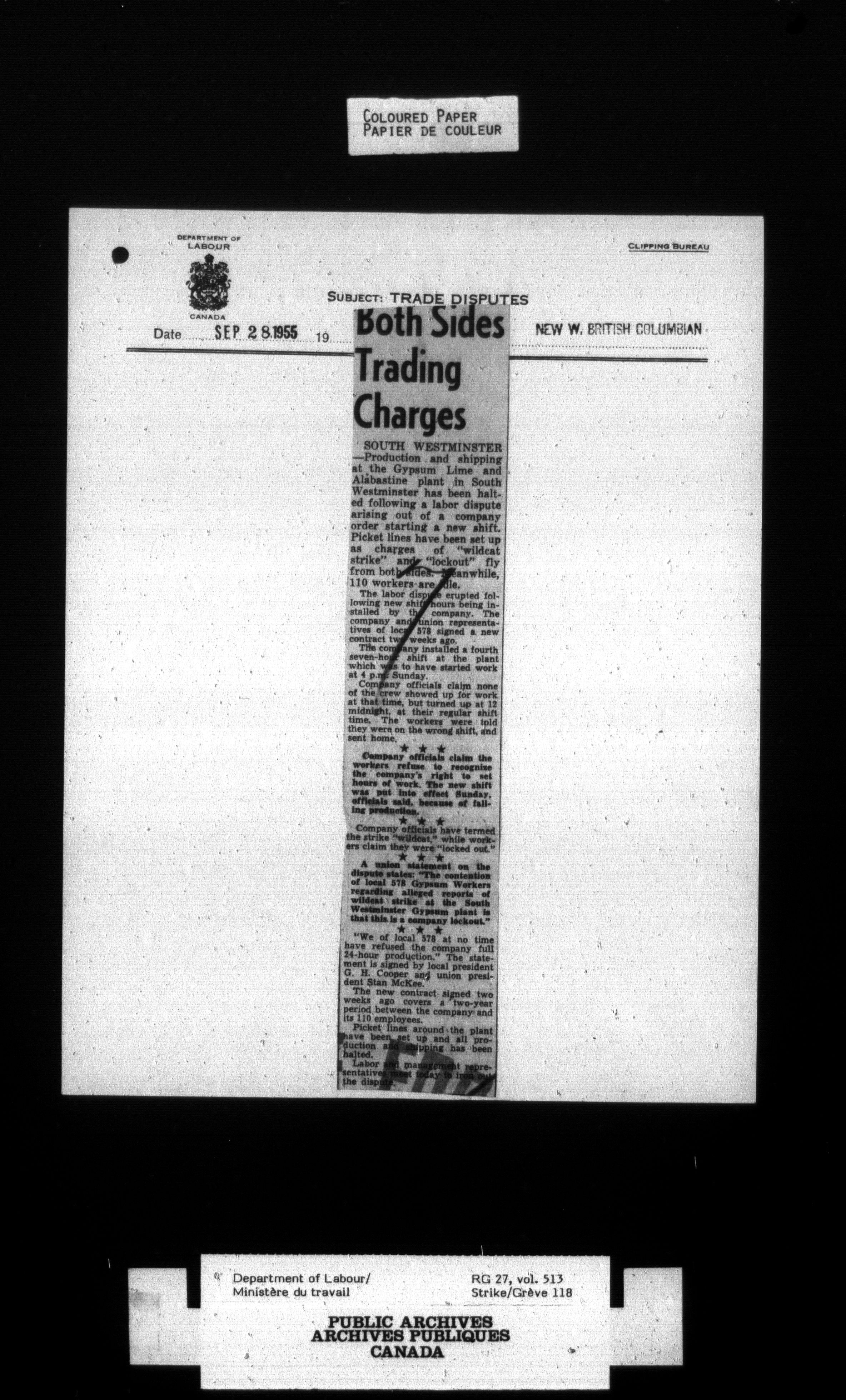 Department of Labour, Economics and Research Branch : Strikes and lockout files - 4133