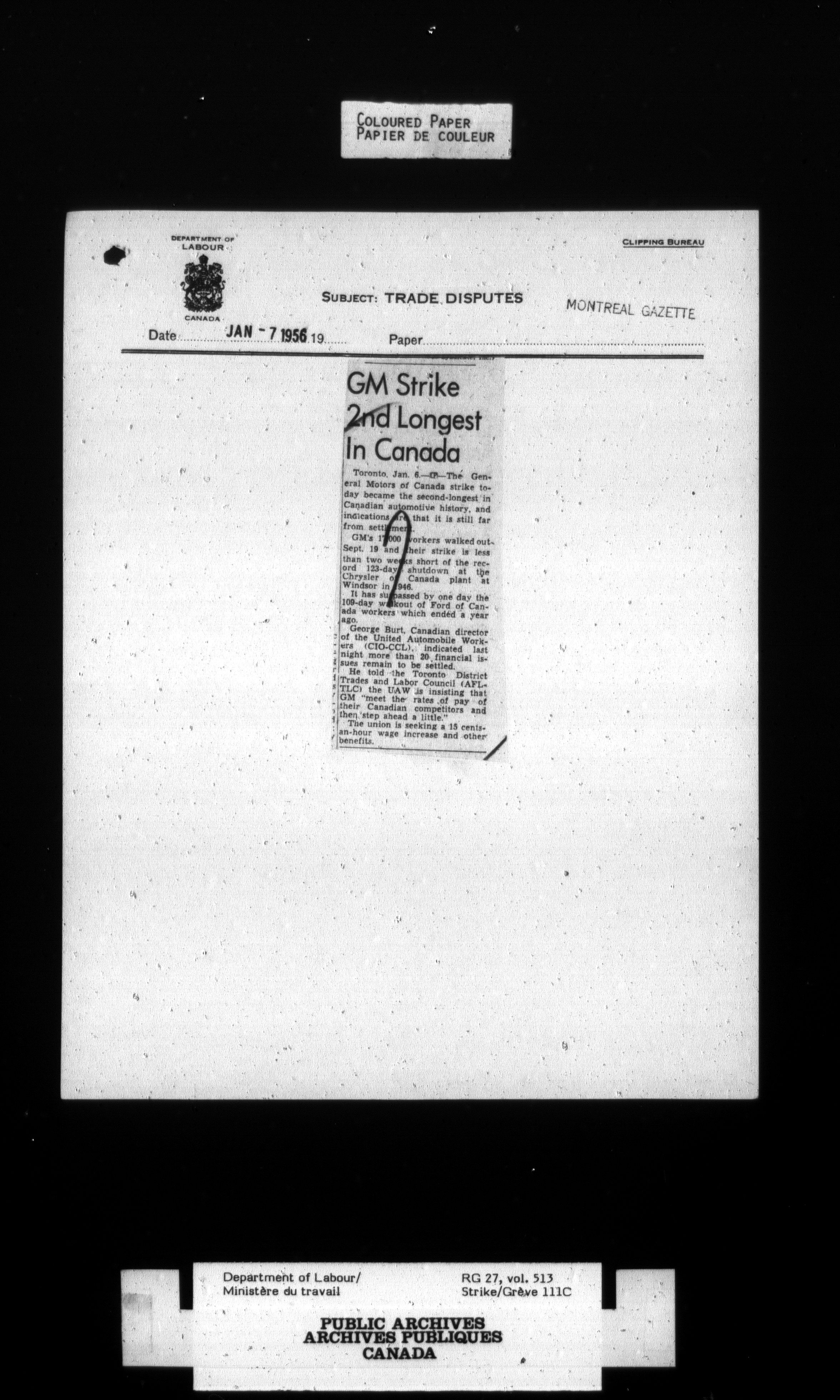 Department of Labour, Economics and Research Branch : Strikes and lockout files - 4133