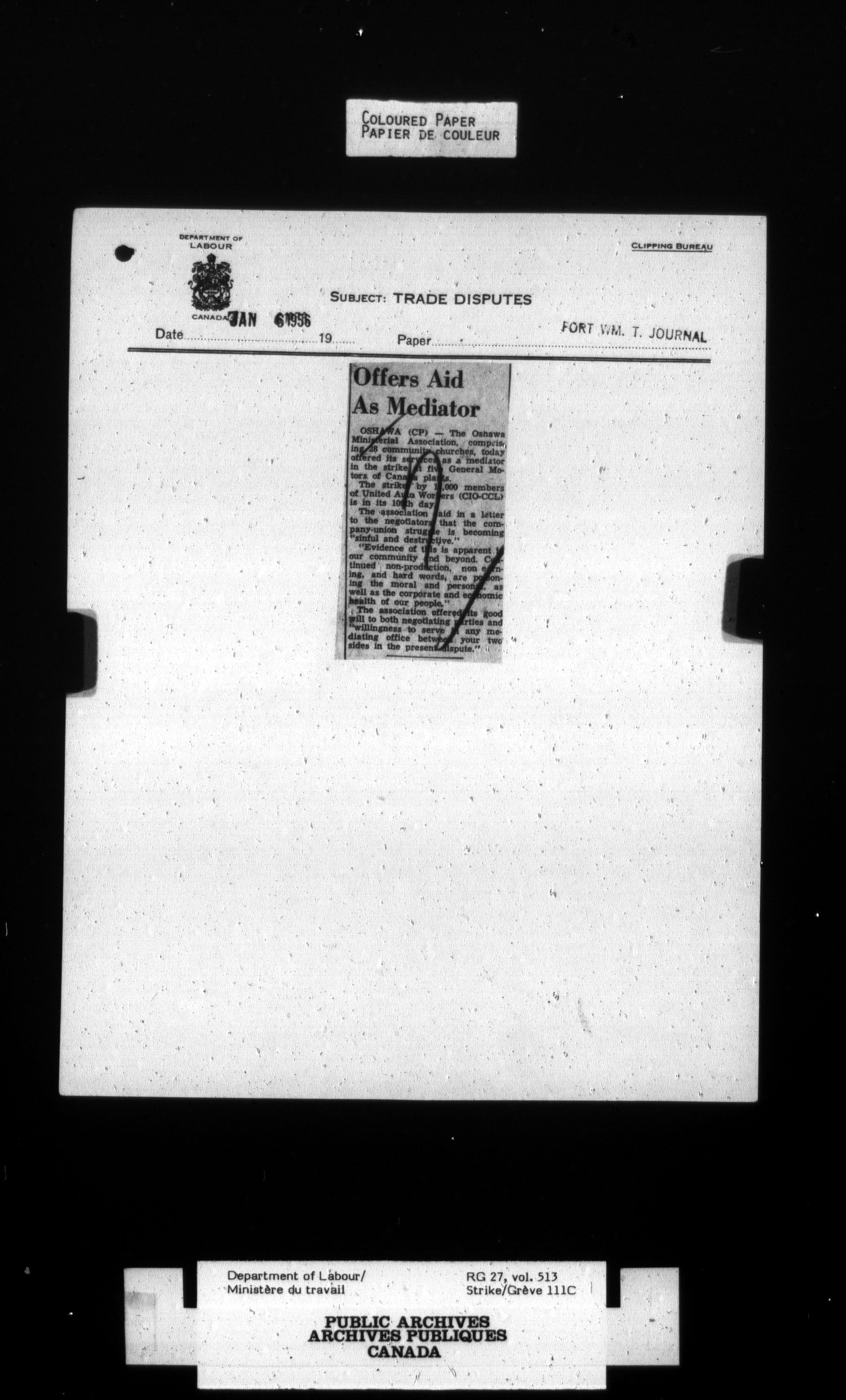 Department of Labour, Economics and Research Branch : Strikes and lockout files - 4133