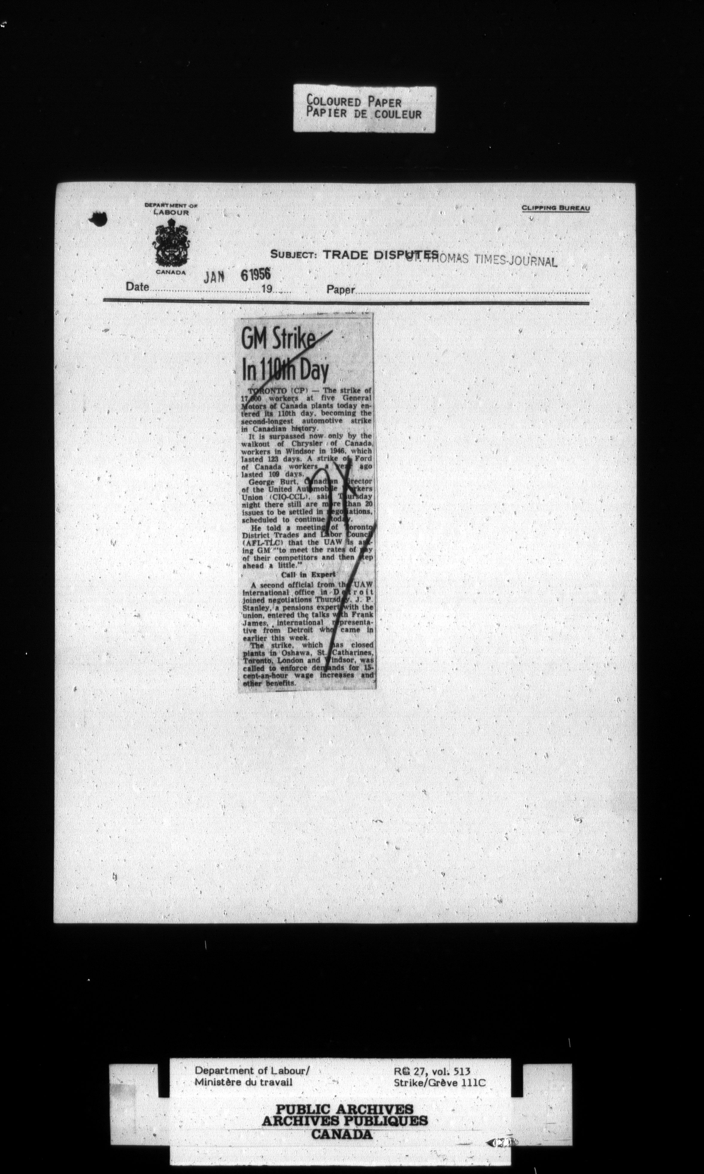 Department of Labour, Economics and Research Branch : Strikes and lockout files - 4133
