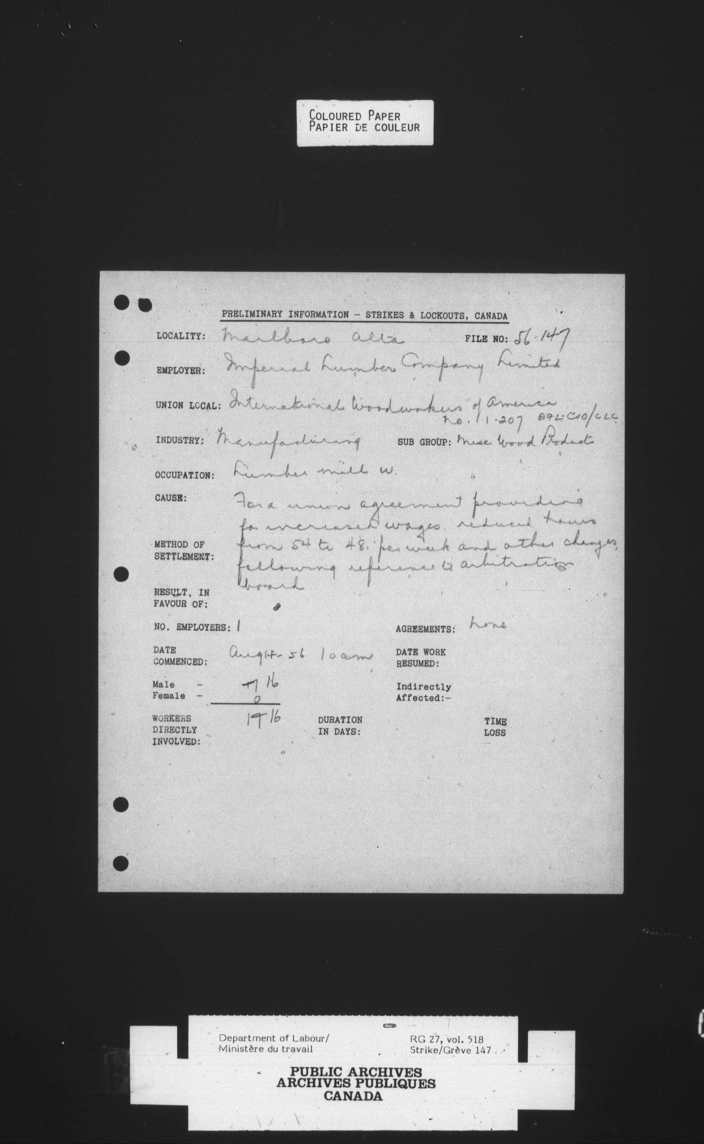 Department of Labour, Economics and Research Branch : Strikes and lockout files - 4135