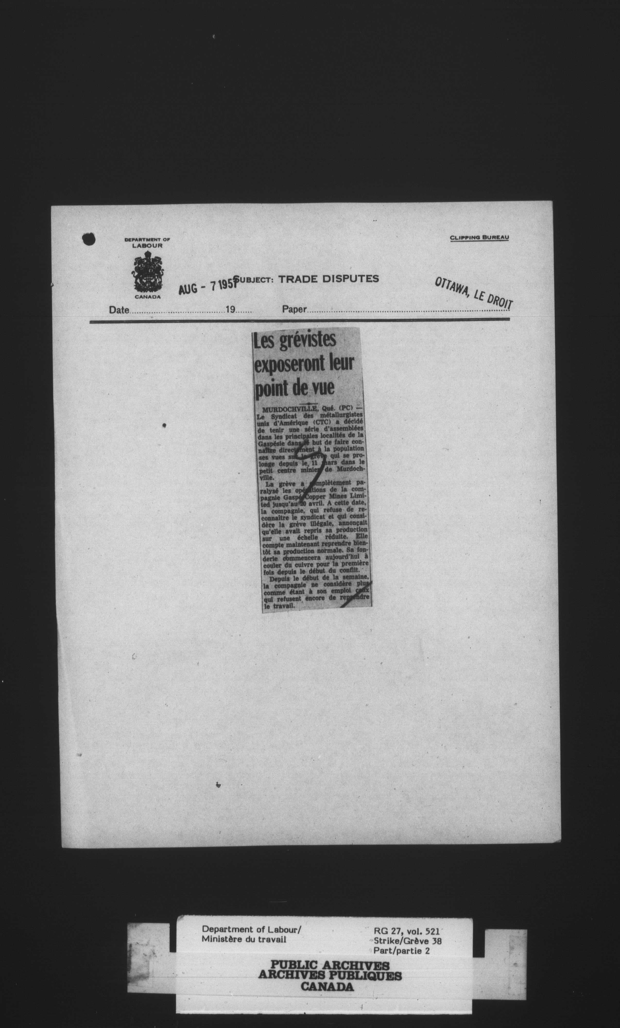 Department of Labour, Economics and Research Branch : Strikes and lockout files - 4137
