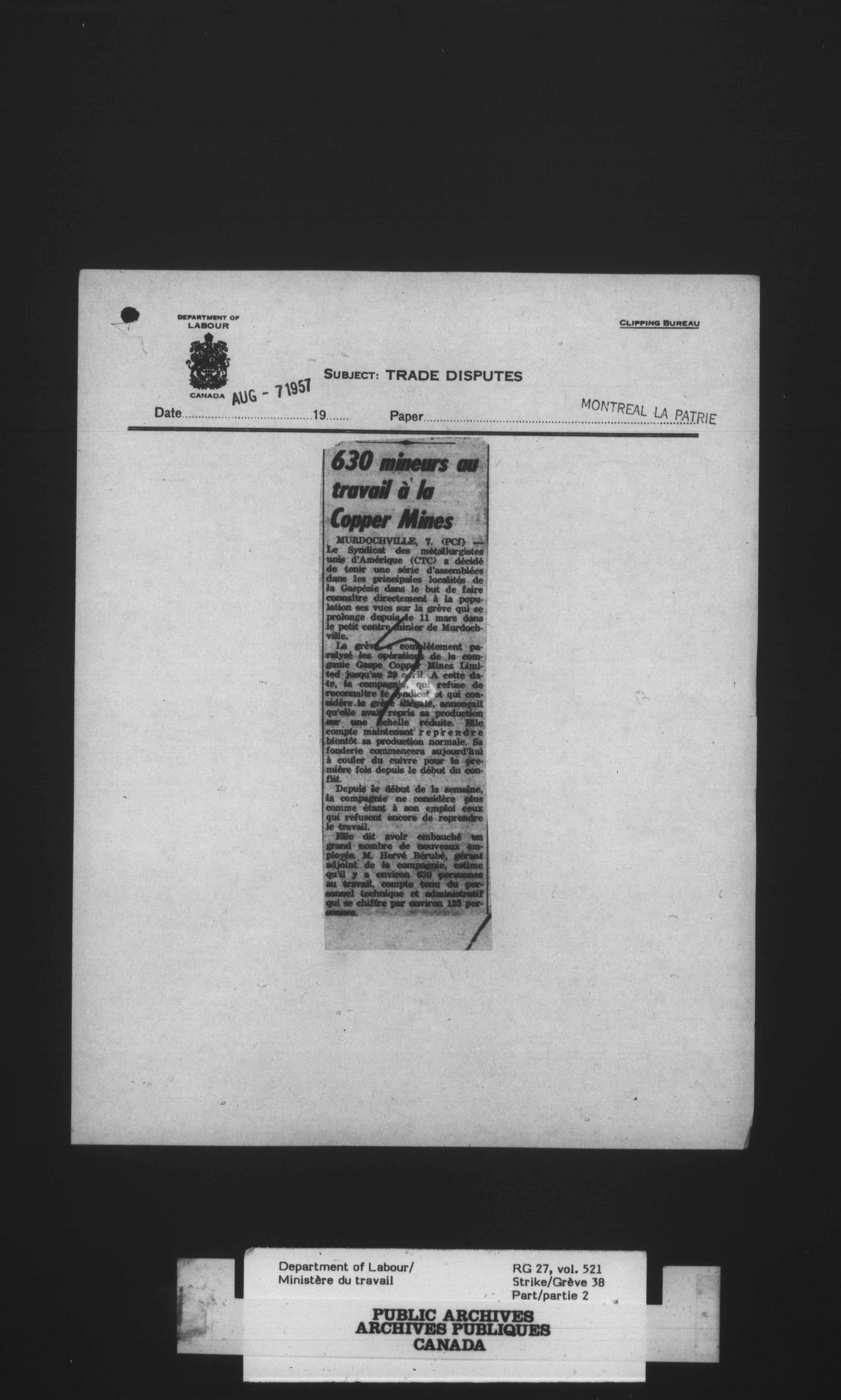 Department of Labour, Economics and Research Branch : Strikes and lockout files - 4137