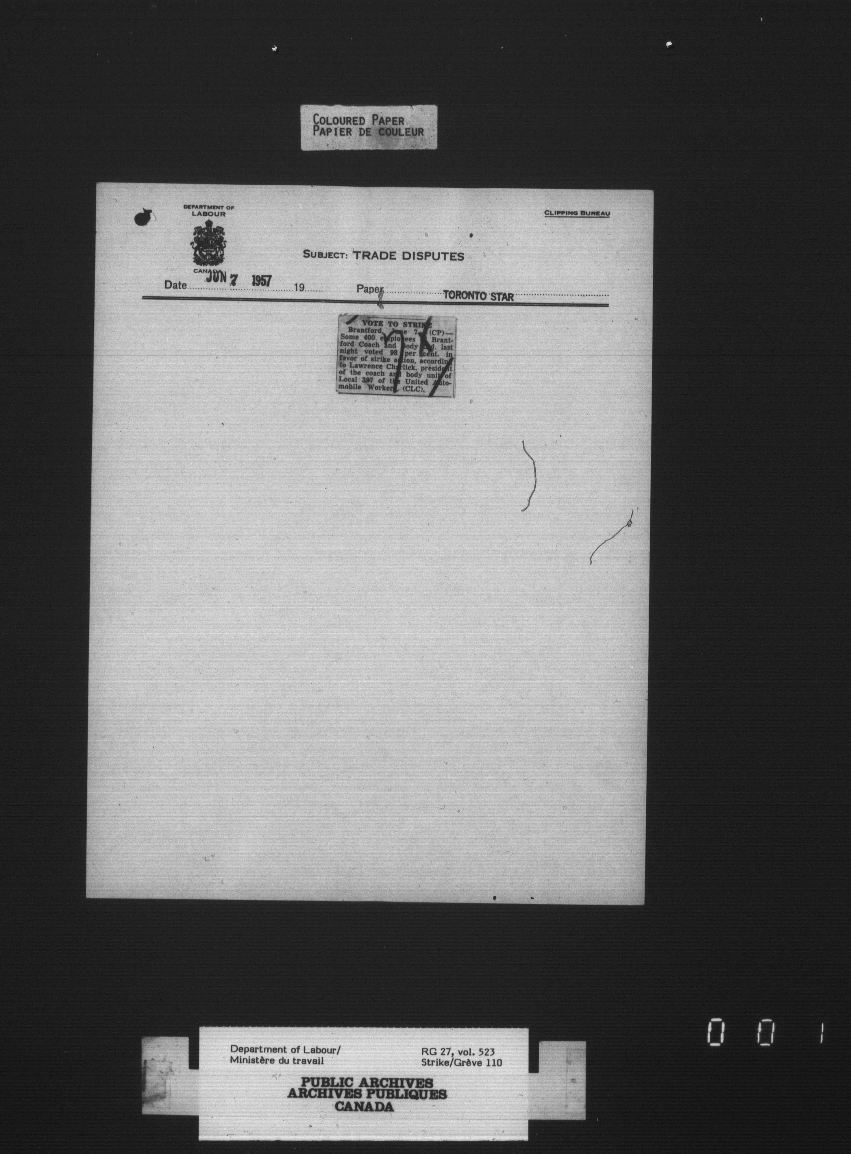 Department of Labour, Economics and Research Branch : Strikes and lockout files - 4138