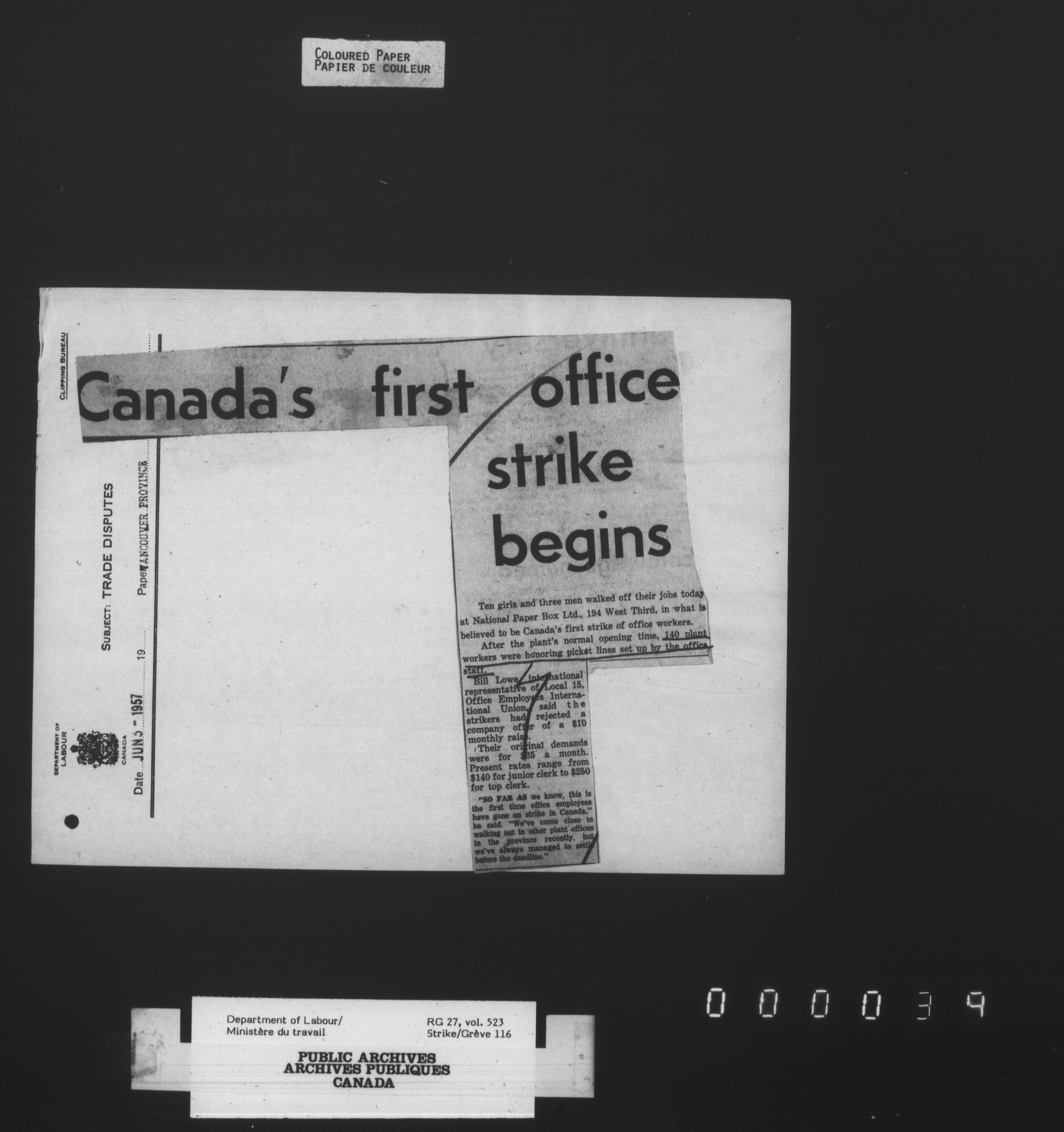 Department of Labour, Economics and Research Branch : Strikes and lockout files - 4139