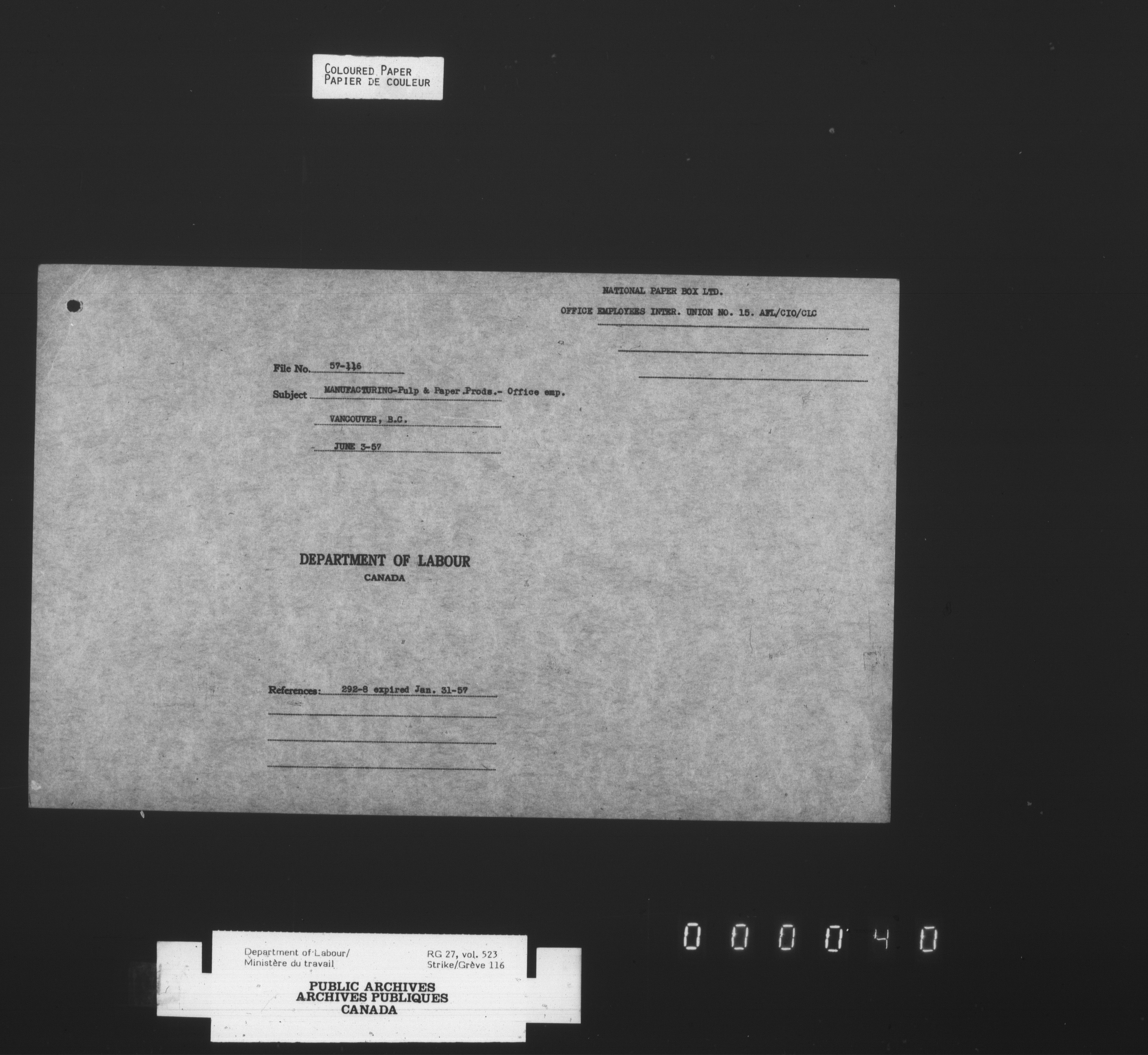 Department of Labour, Economics and Research Branch : Strikes and lockout files - 4139