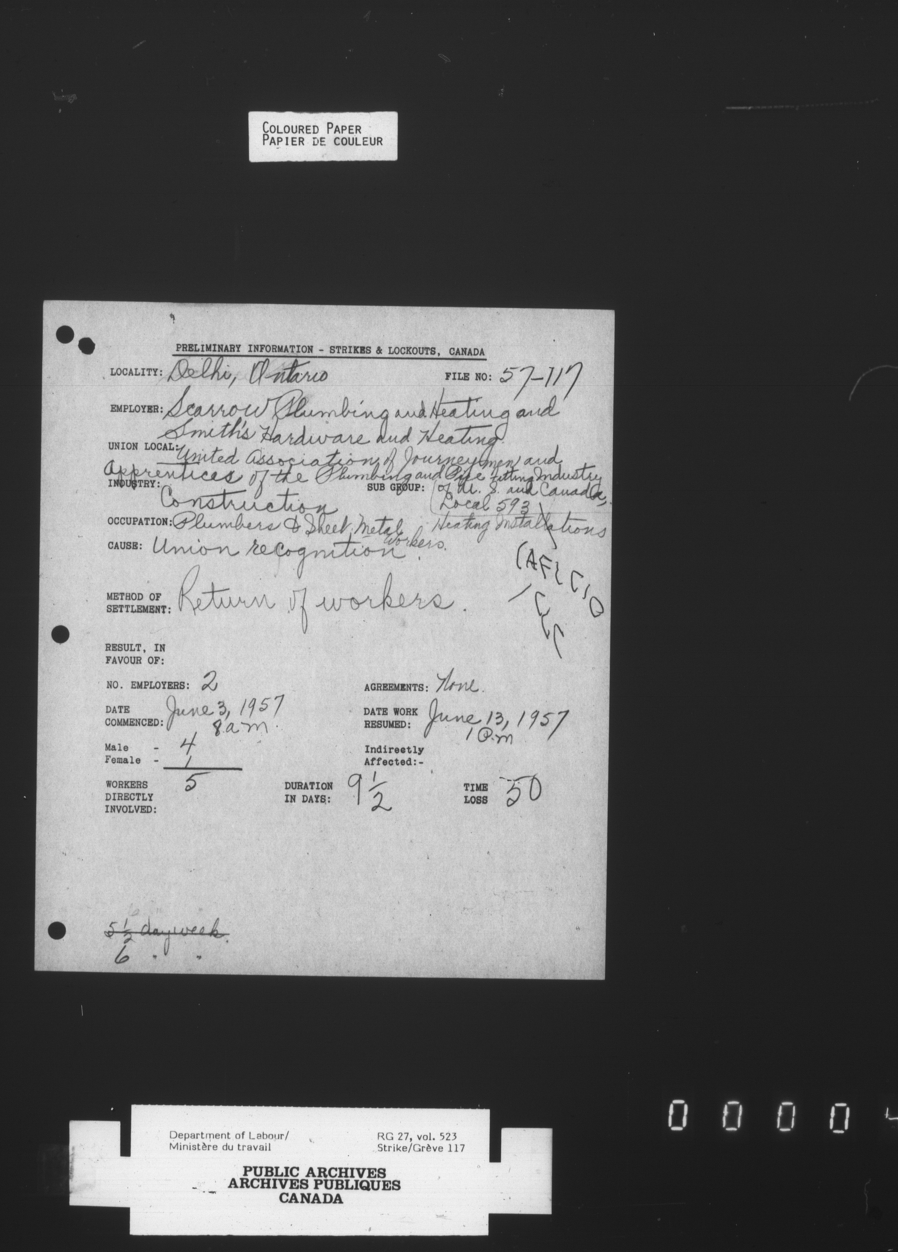 Department of Labour, Economics and Research Branch : Strikes and lockout files - 4139