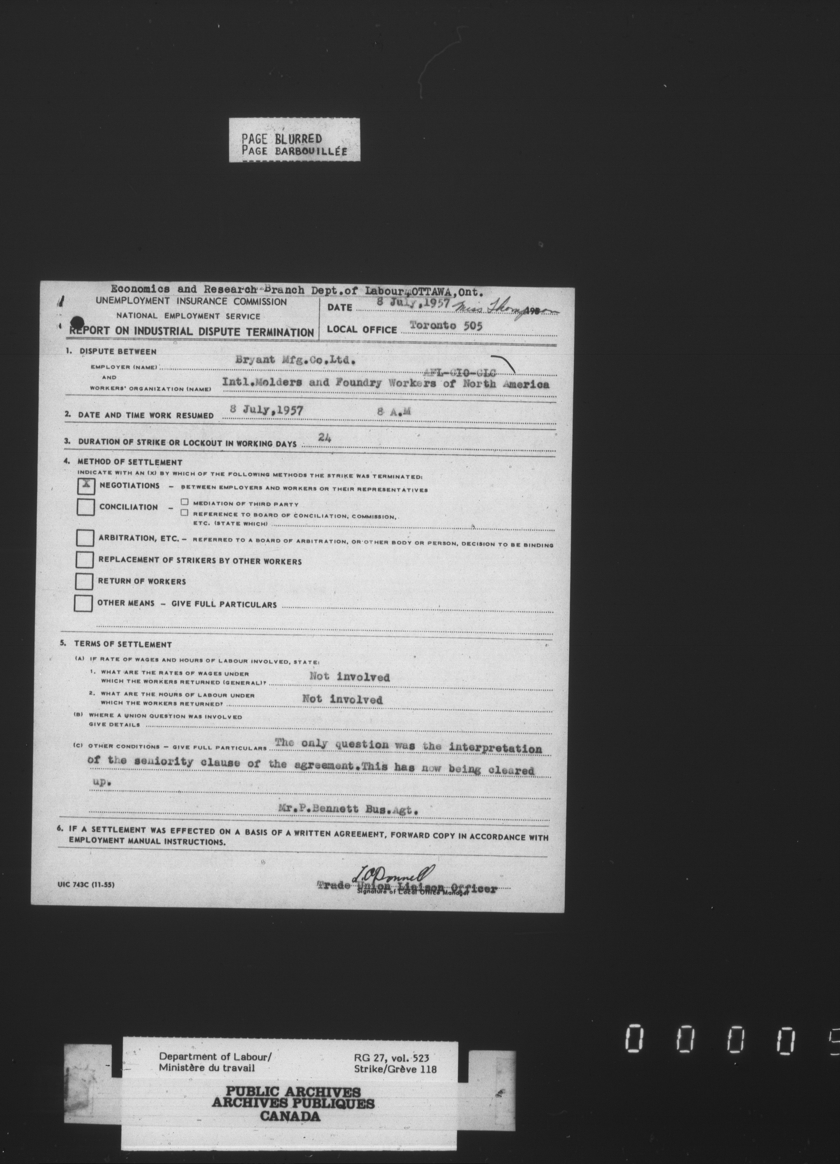 Department of Labour, Economics and Research Branch : Strikes and lockout files - 4139