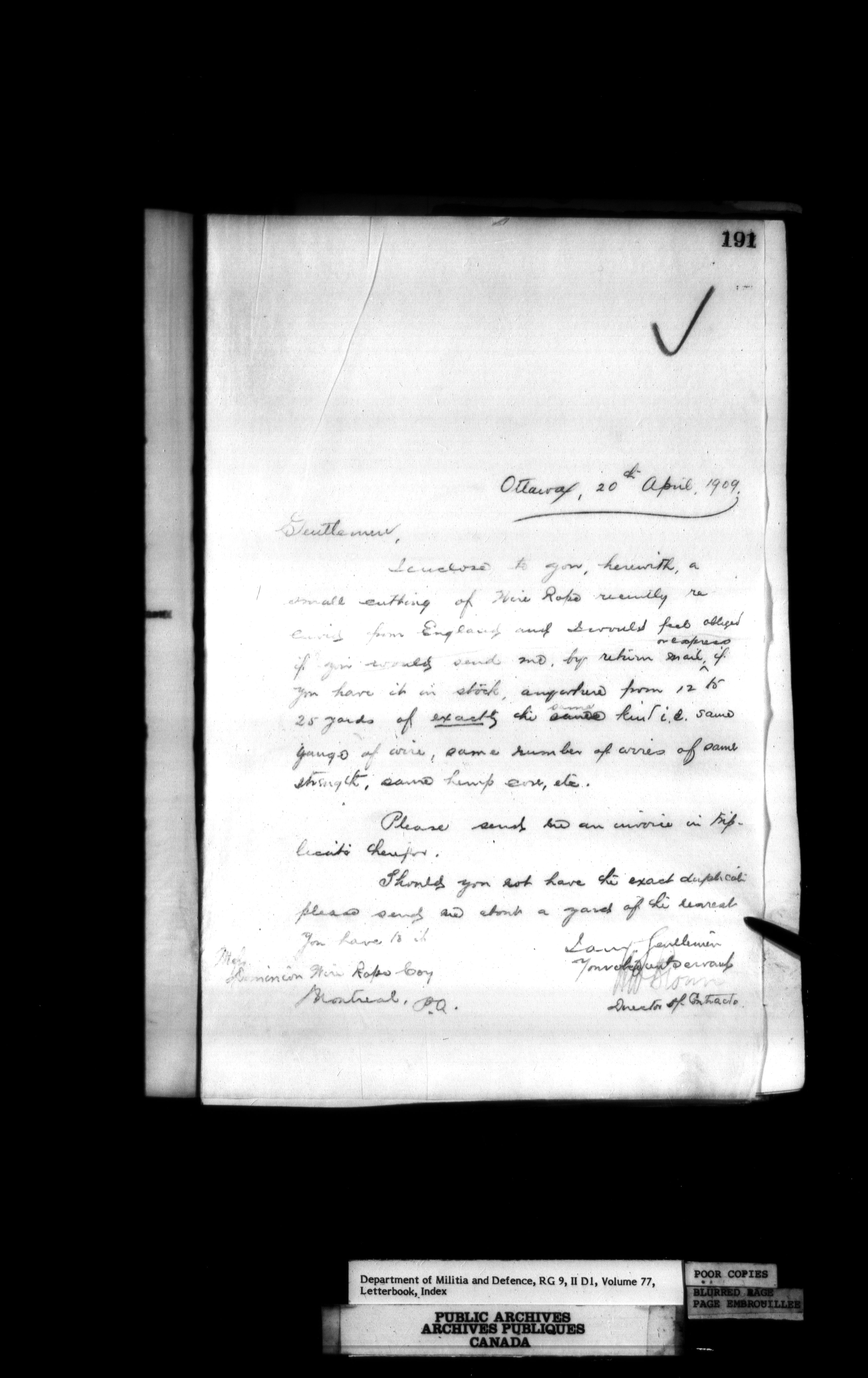 Department of Militia and Defence. Contracts Branch : Letterbooks, 1895-1912 : T-414