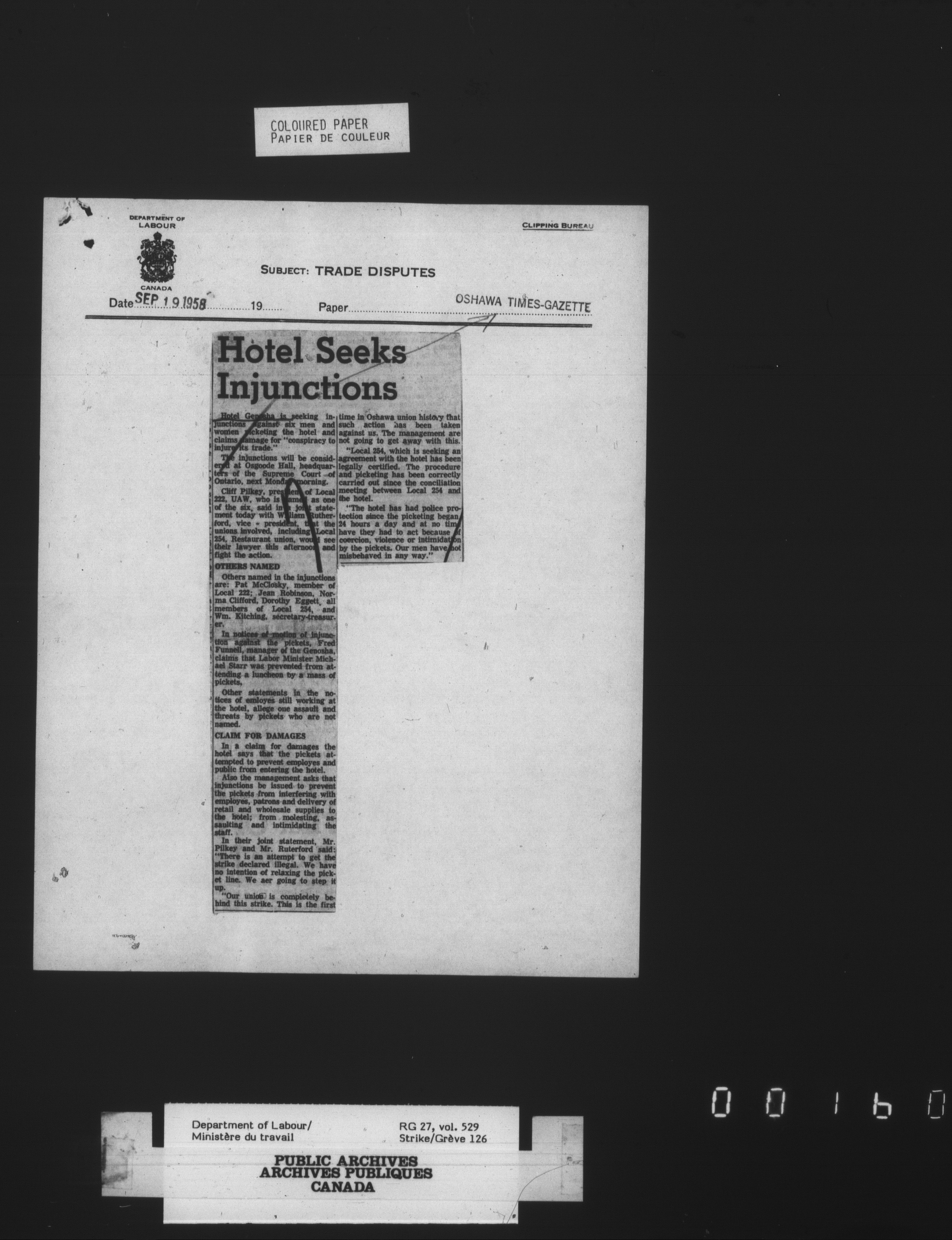 Department of Labour, Economics and Research Branch : Strikes and lockout files - 4141