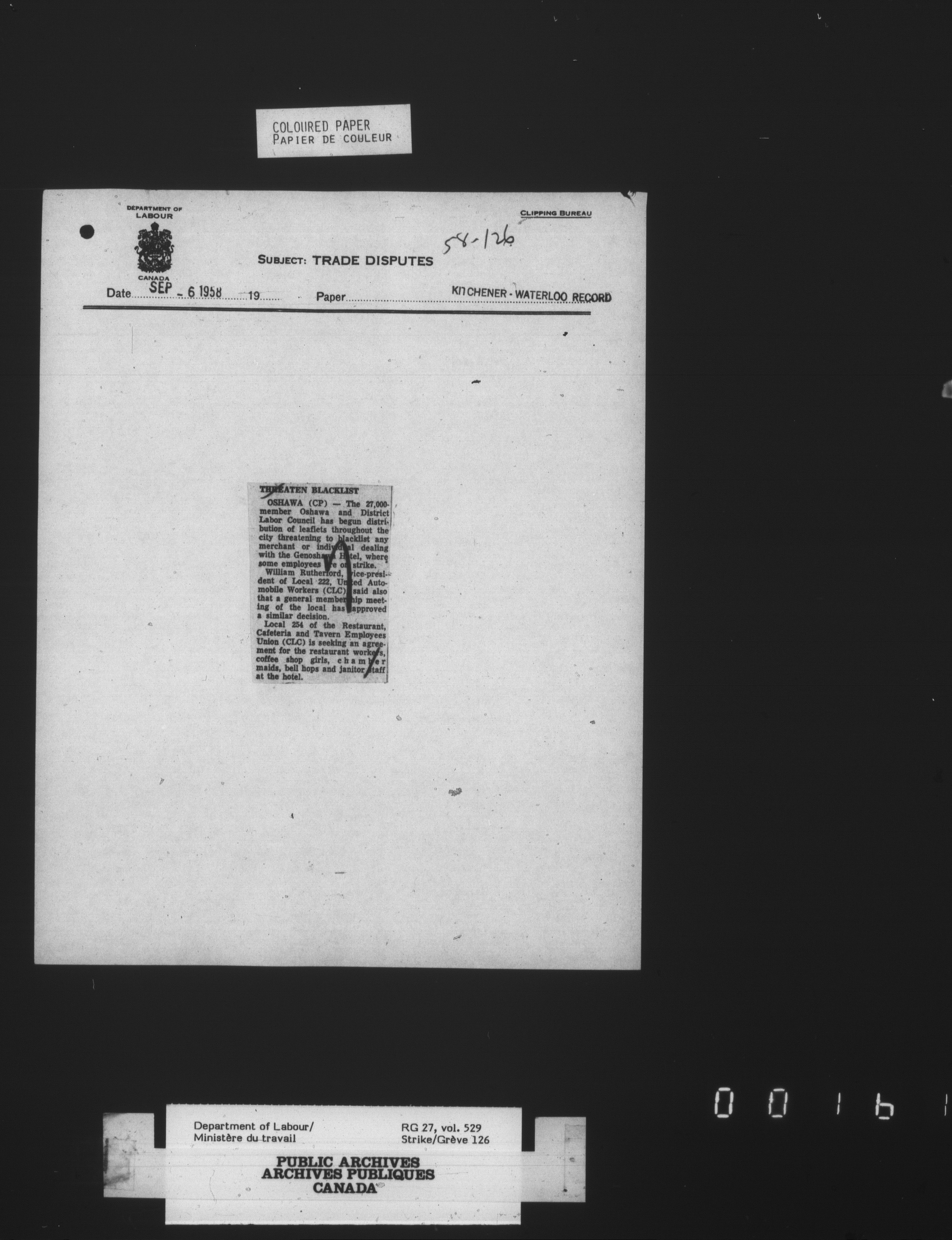 Department of Labour, Economics and Research Branch : Strikes and lockout files - 4141