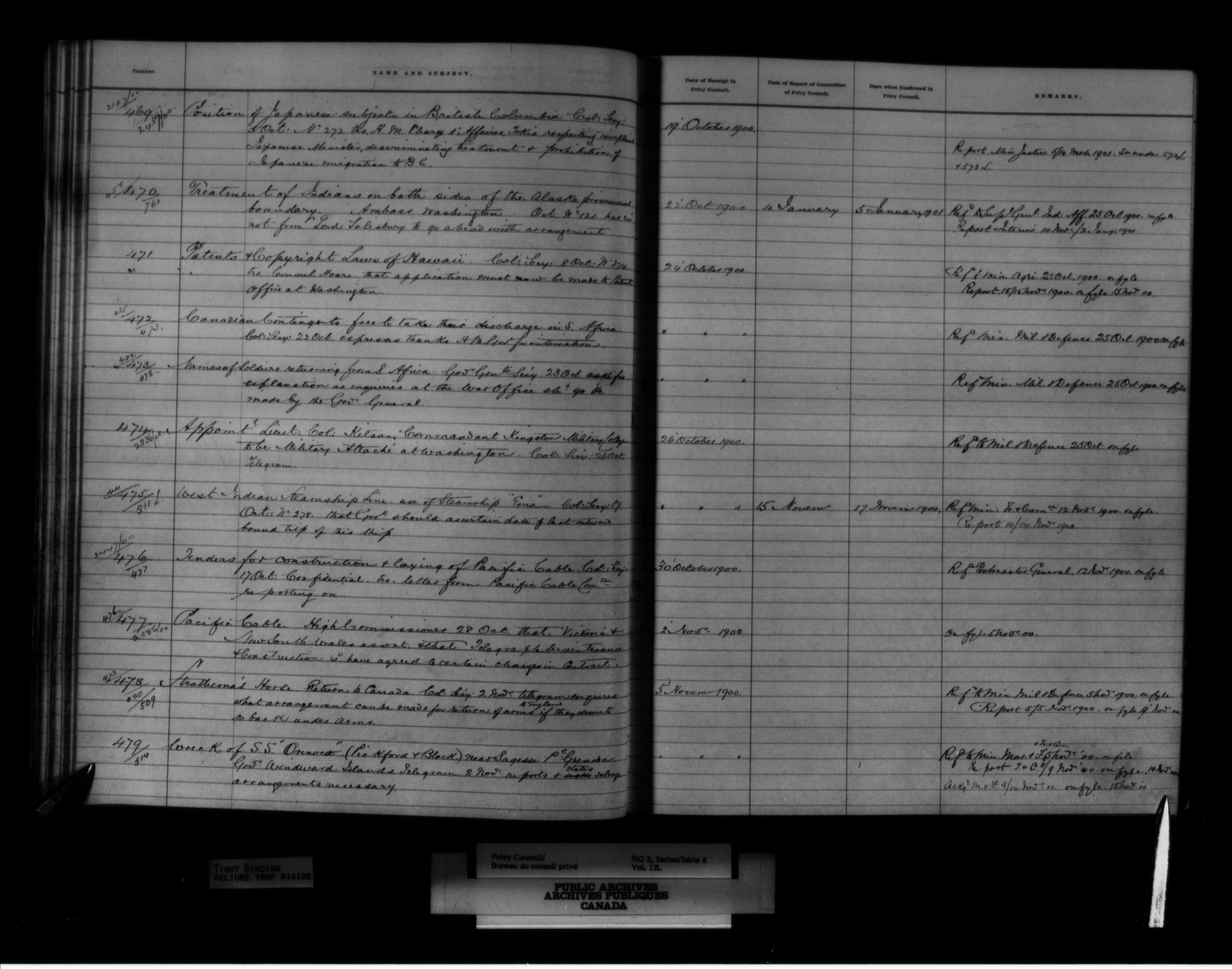 Privy Council Office : Registers of Despatches, 1867-1911, RG 2, Series 6