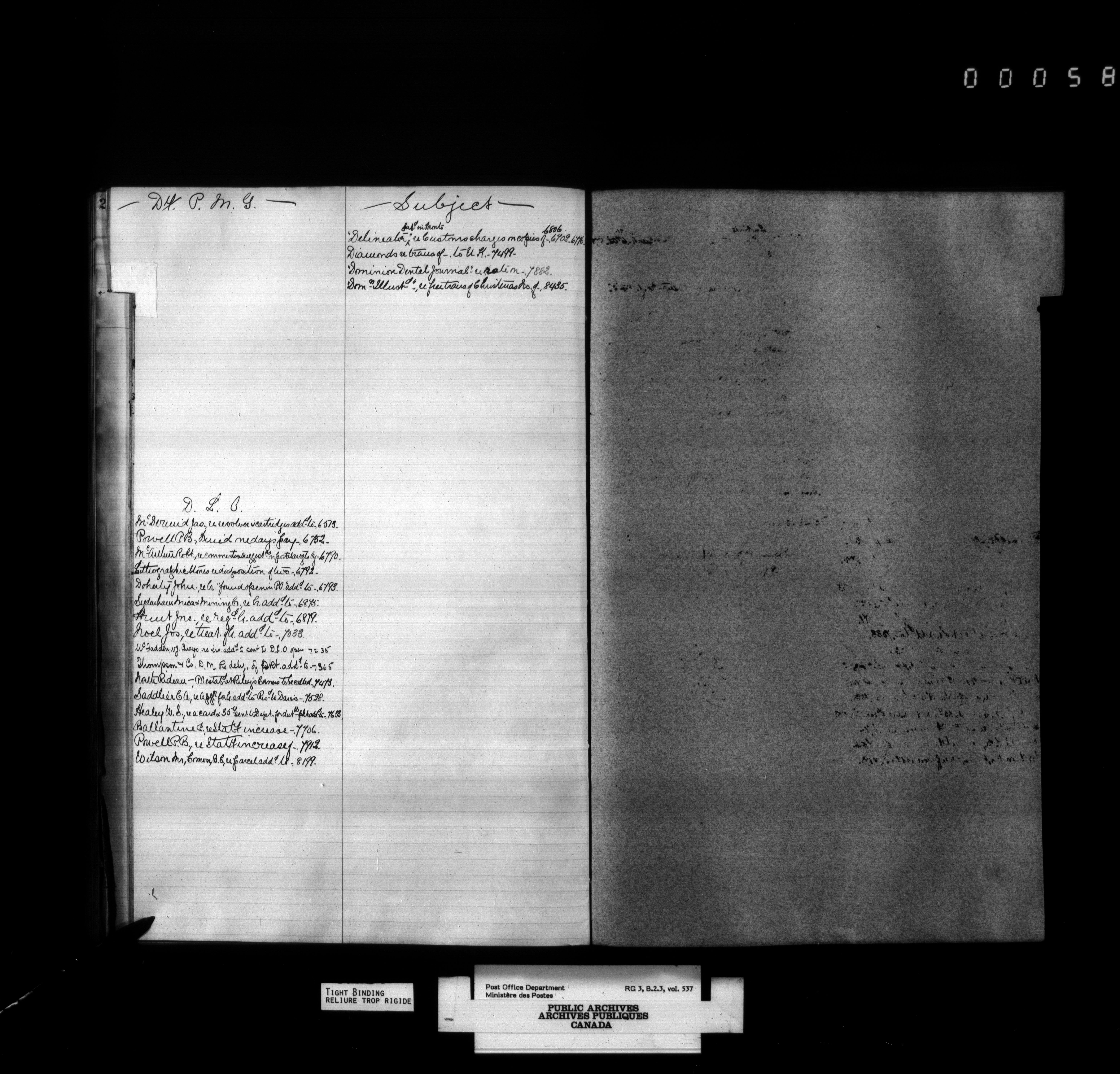 Registers to letters received by the Postmaster General's office : T-4151