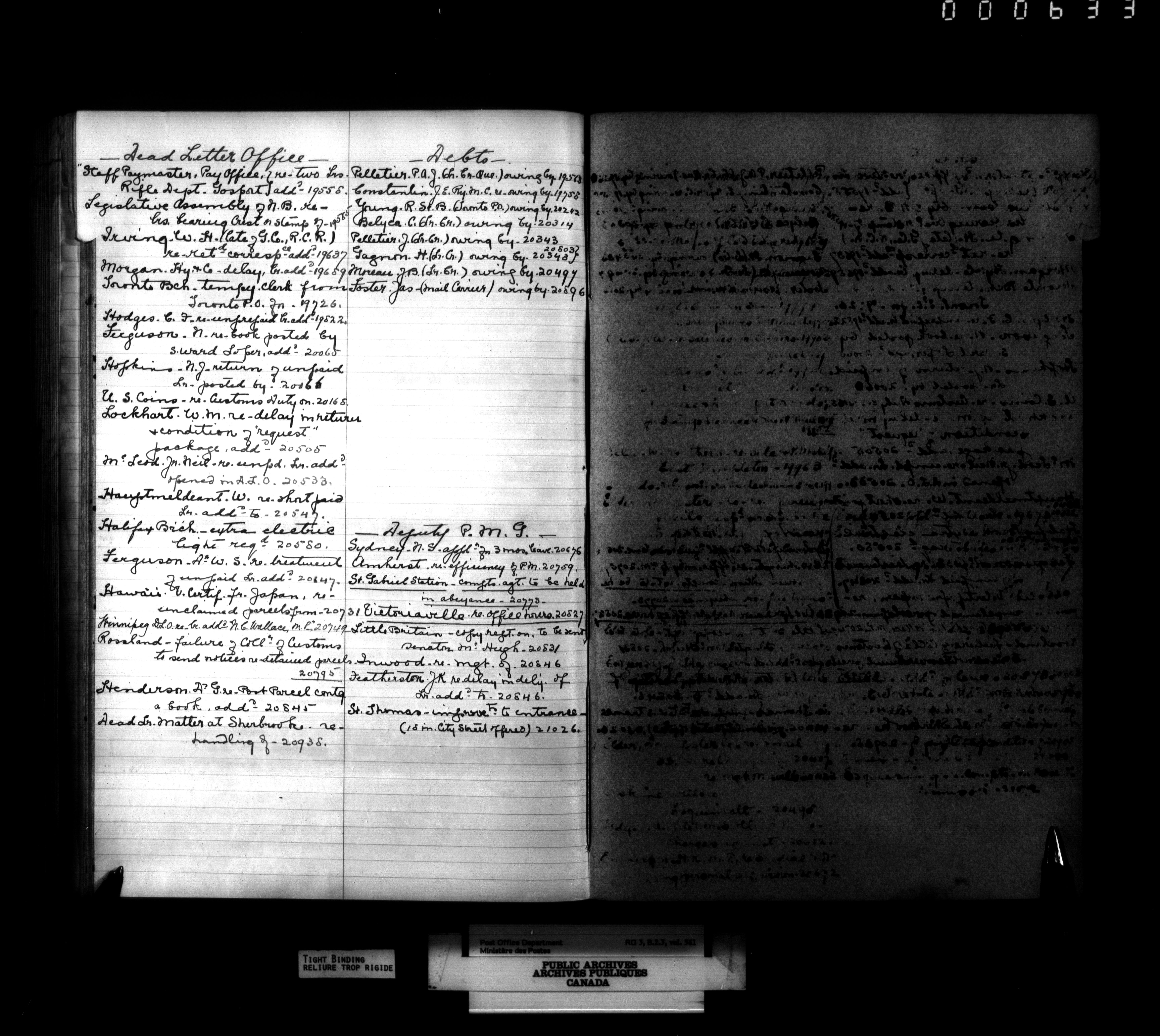 Registers to letters received by the Postmaster General's office : T-4159