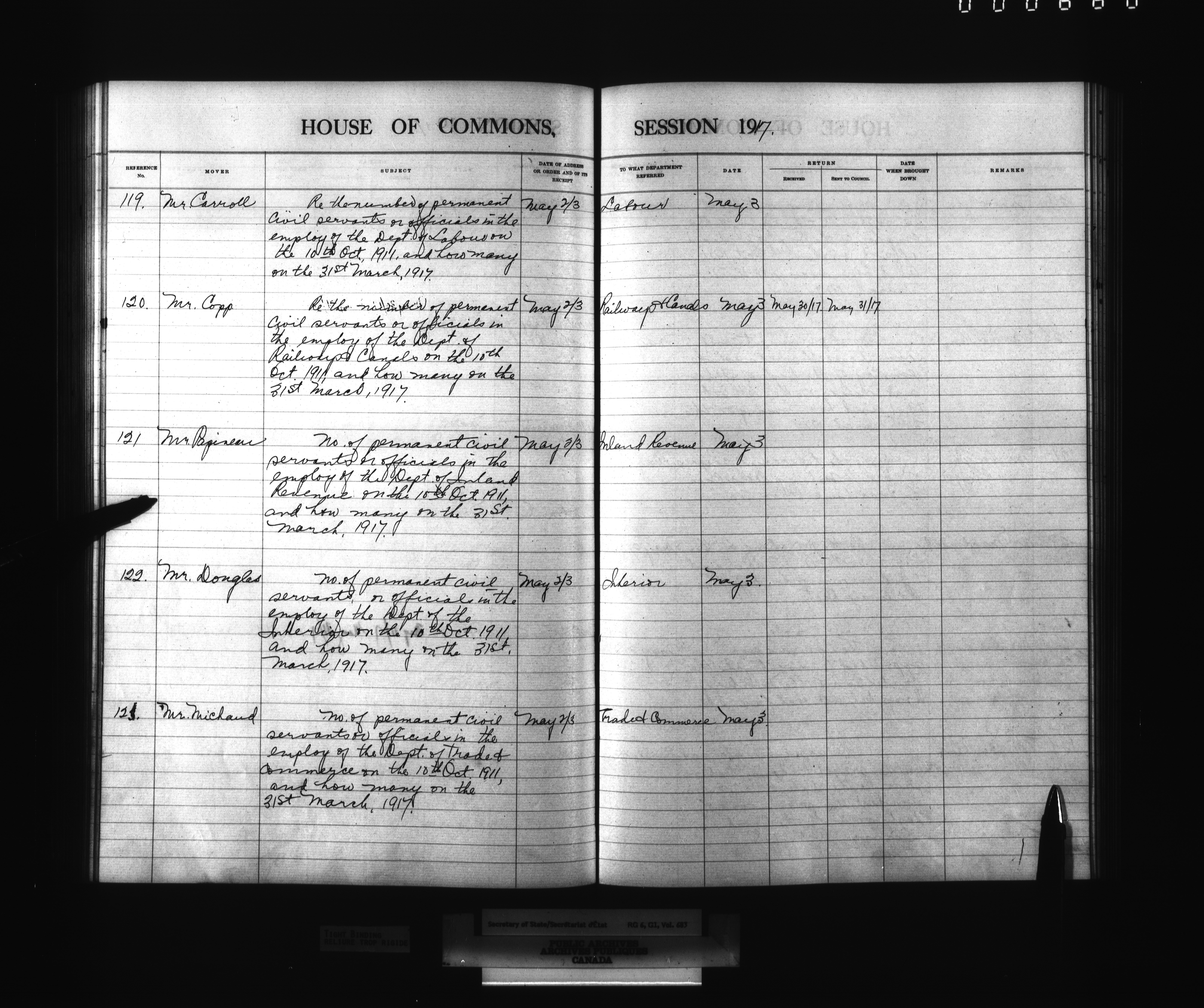 Secretary of State : Returns to addresses and orders of Parliament - 4162