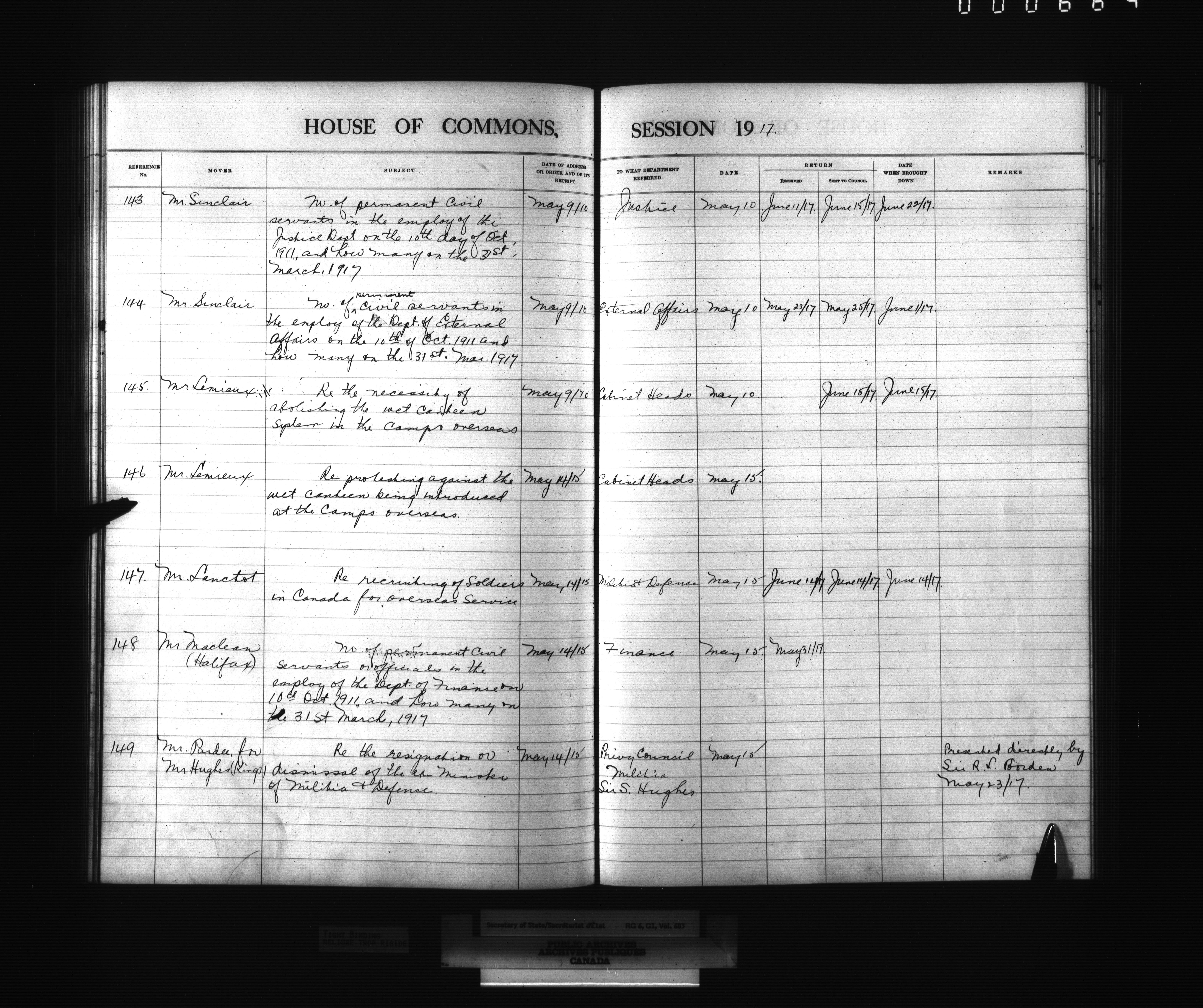 Secretary of State : Returns to addresses and orders of Parliament - 4162