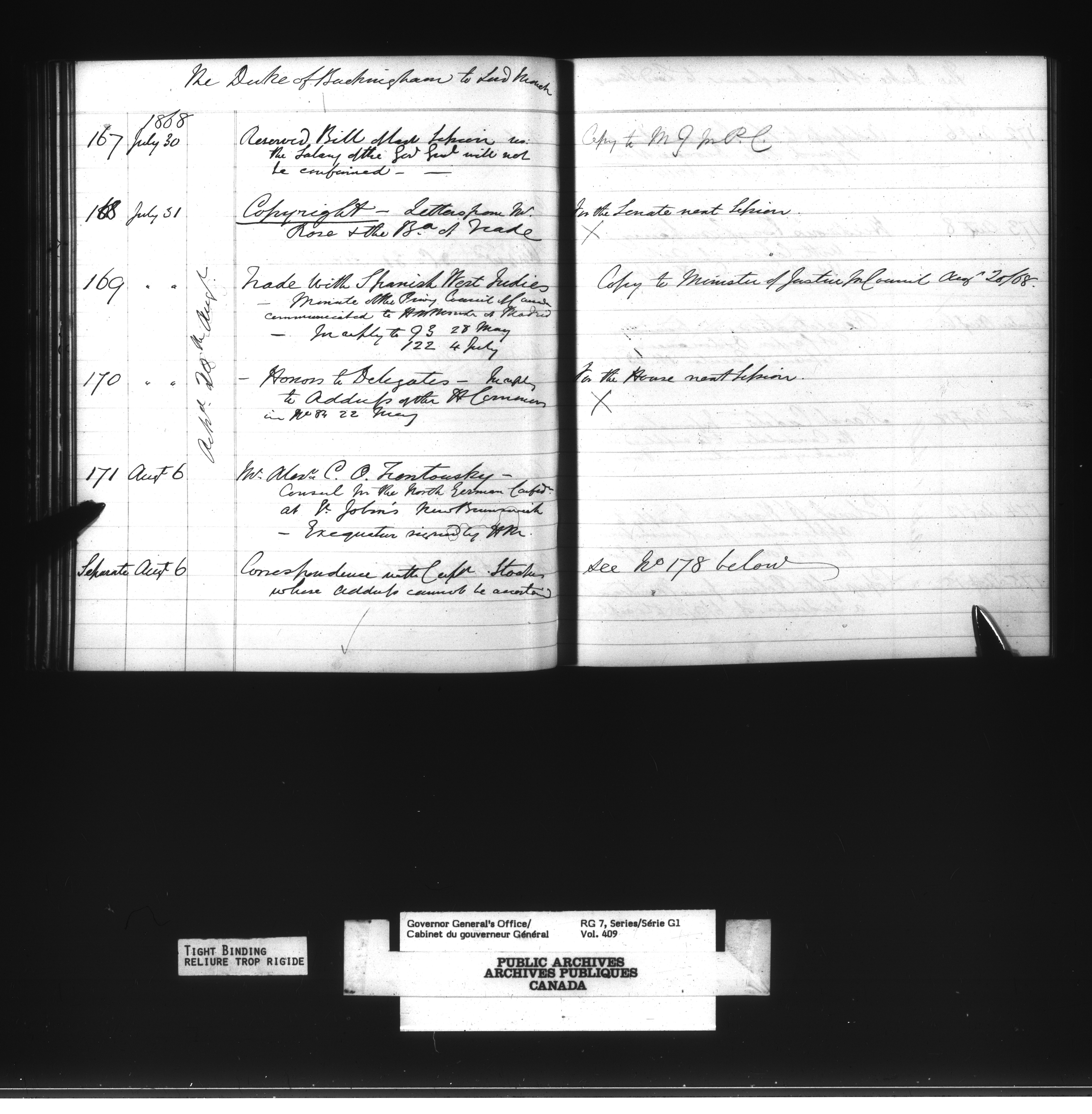 Governor General's Office Register of Despatches between the Colonial Office and the Governor General, 1867-1877 (Indexes) - 4164
