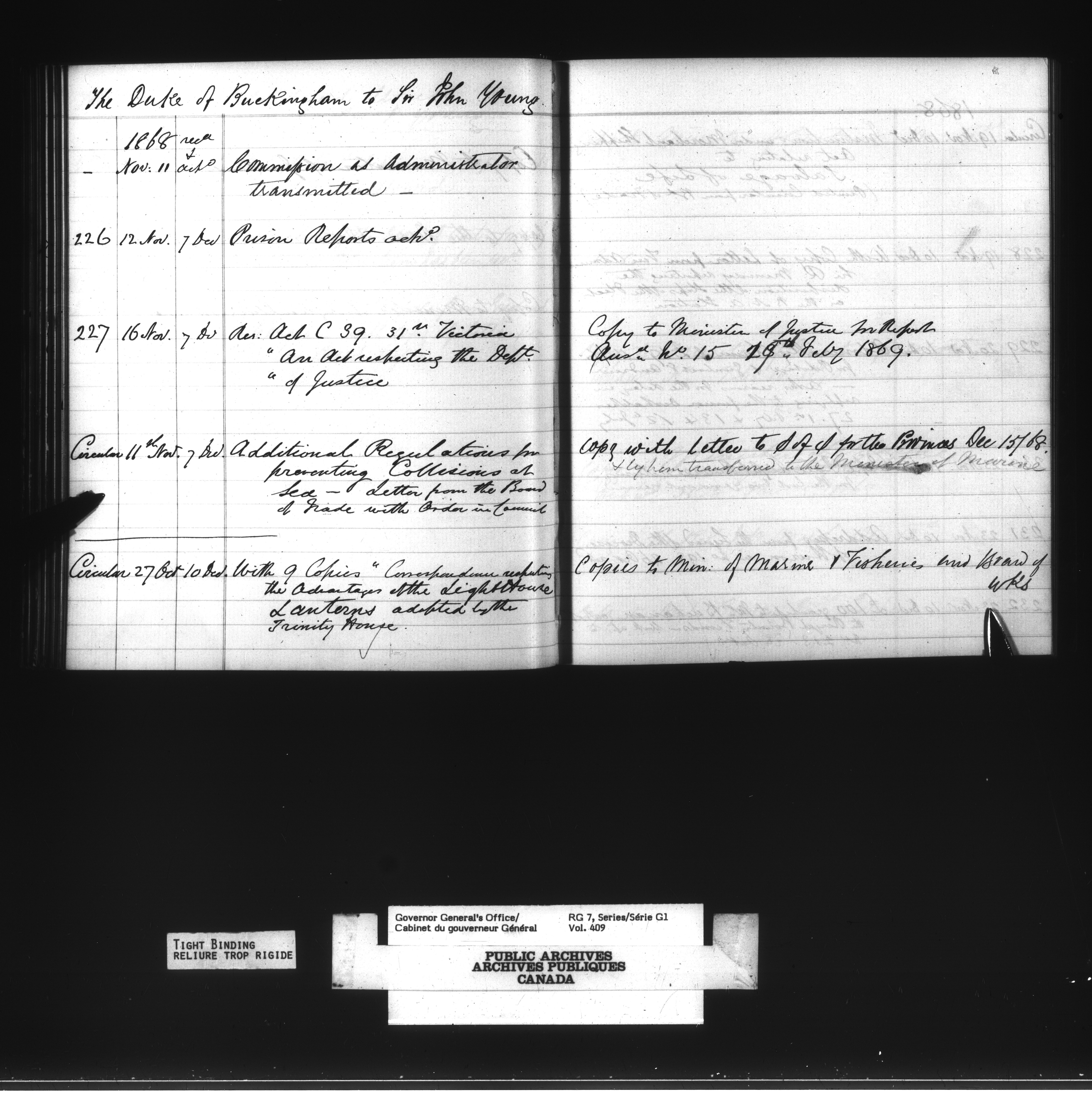 Governor General's Office Register of Despatches between the Colonial Office and the Governor General, 1867-1877 (Indexes) - 4164