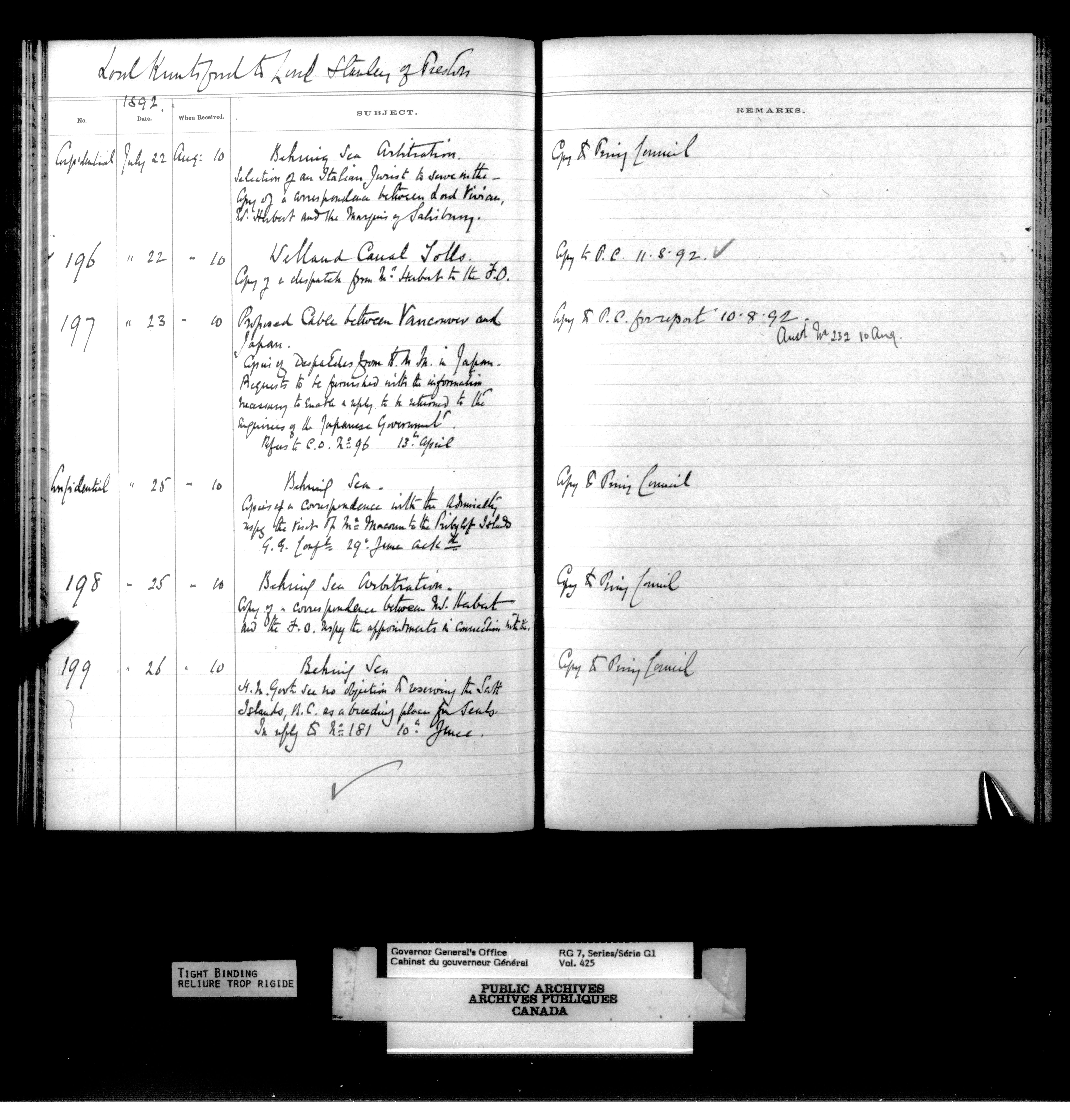 Governor General's Office Register of Despatches between the Colonial Office and the Governor General, 1885-1893 (Indexes) - 4166