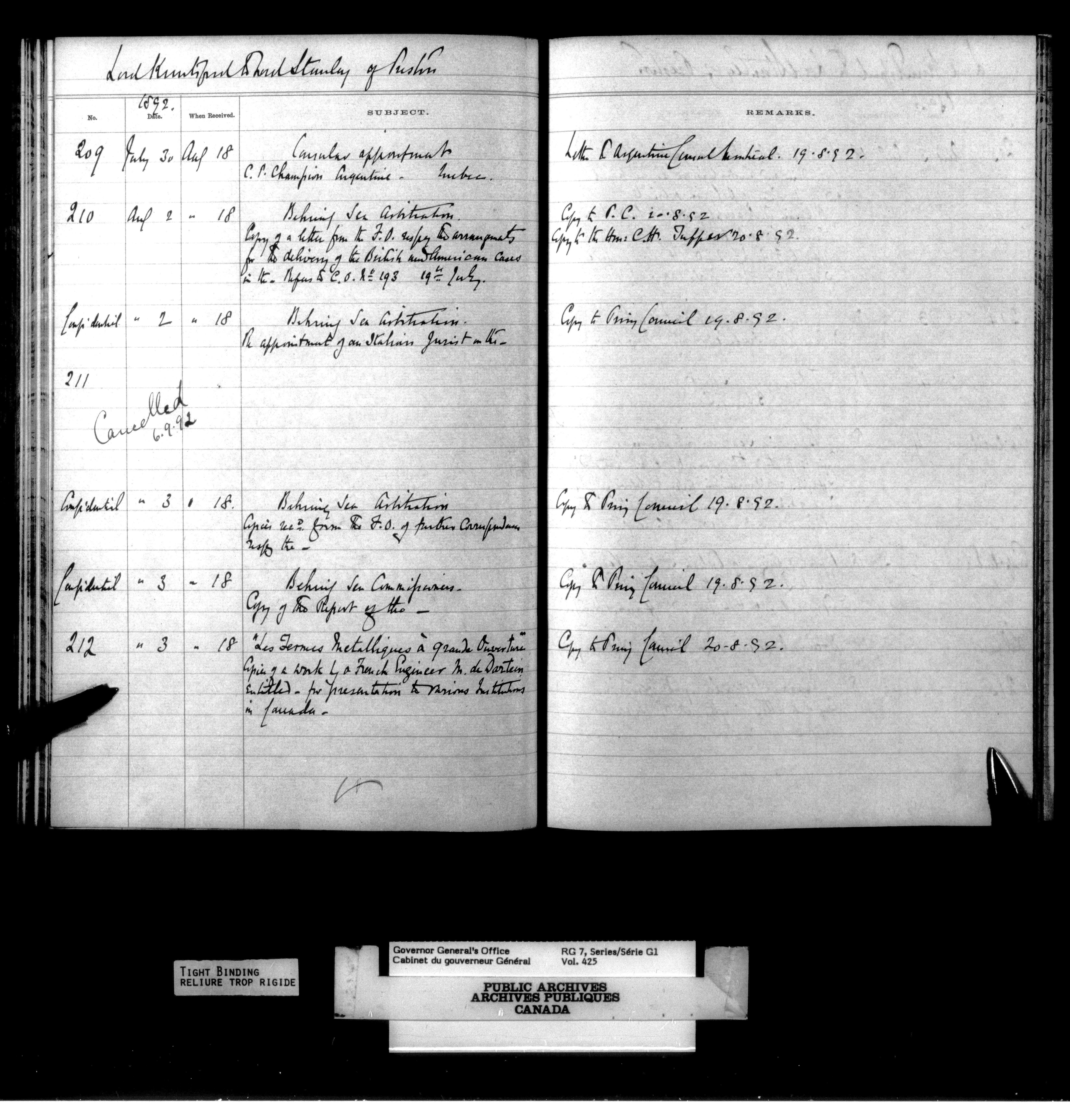 Governor General's Office Register of Despatches between the Colonial Office and the Governor General, 1885-1893 (Indexes) - 4166
