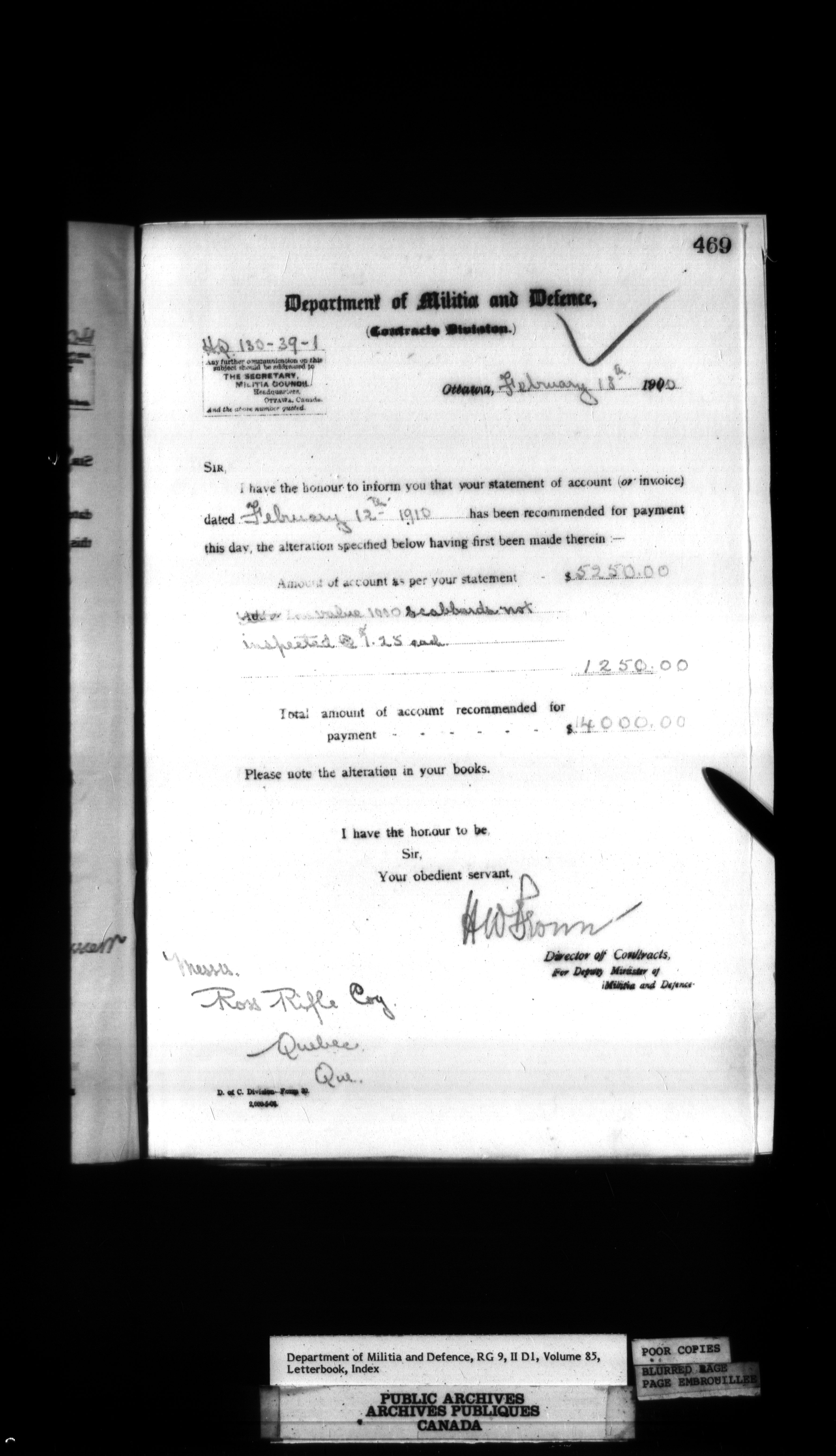 Department of Militia and Defence. Contracts Branch : Letterbooks, 1895-1912 : T-417