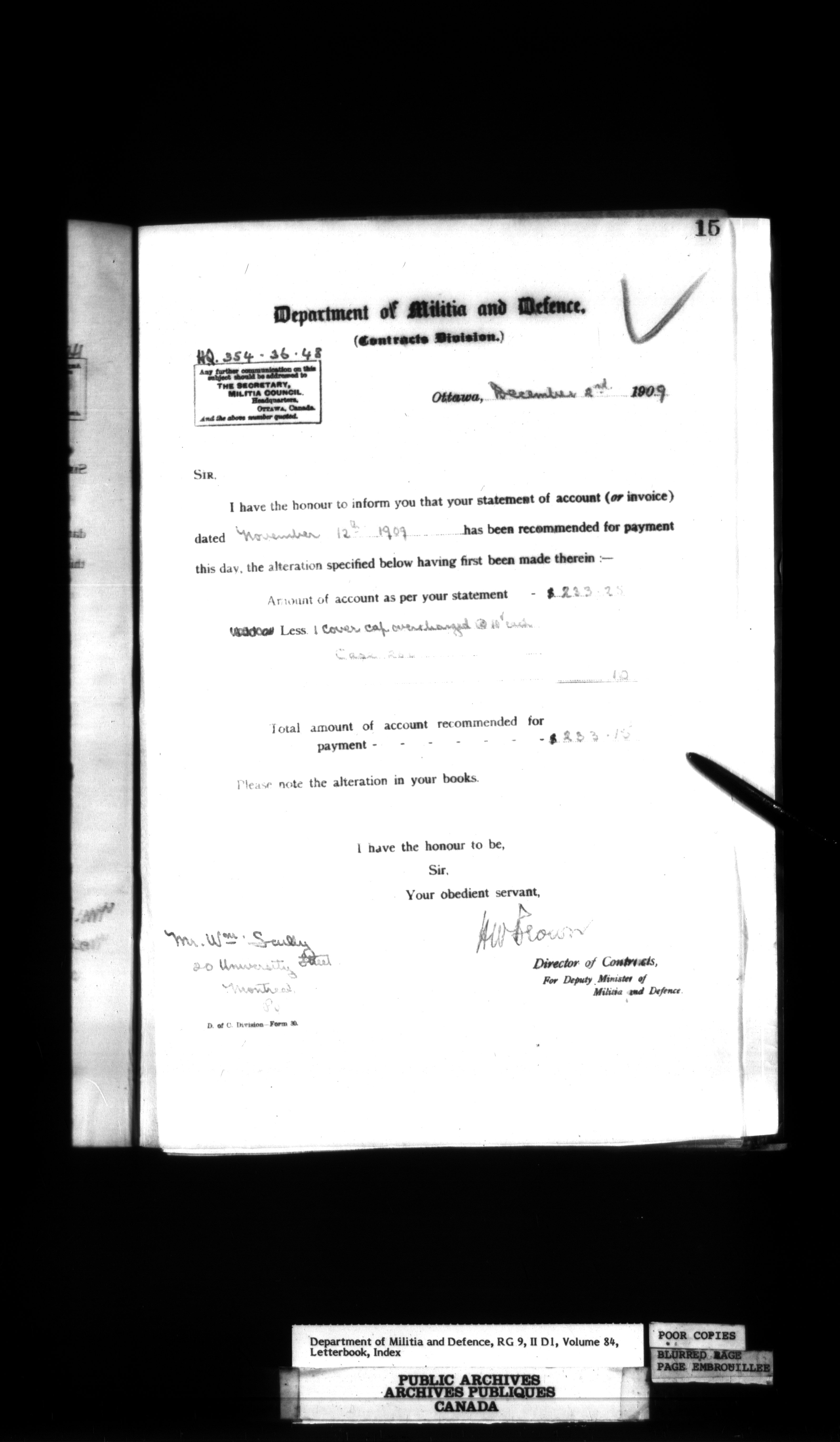 Department of Militia and Defence : Contracts Branch letterbooks, 1895-1912 - 417