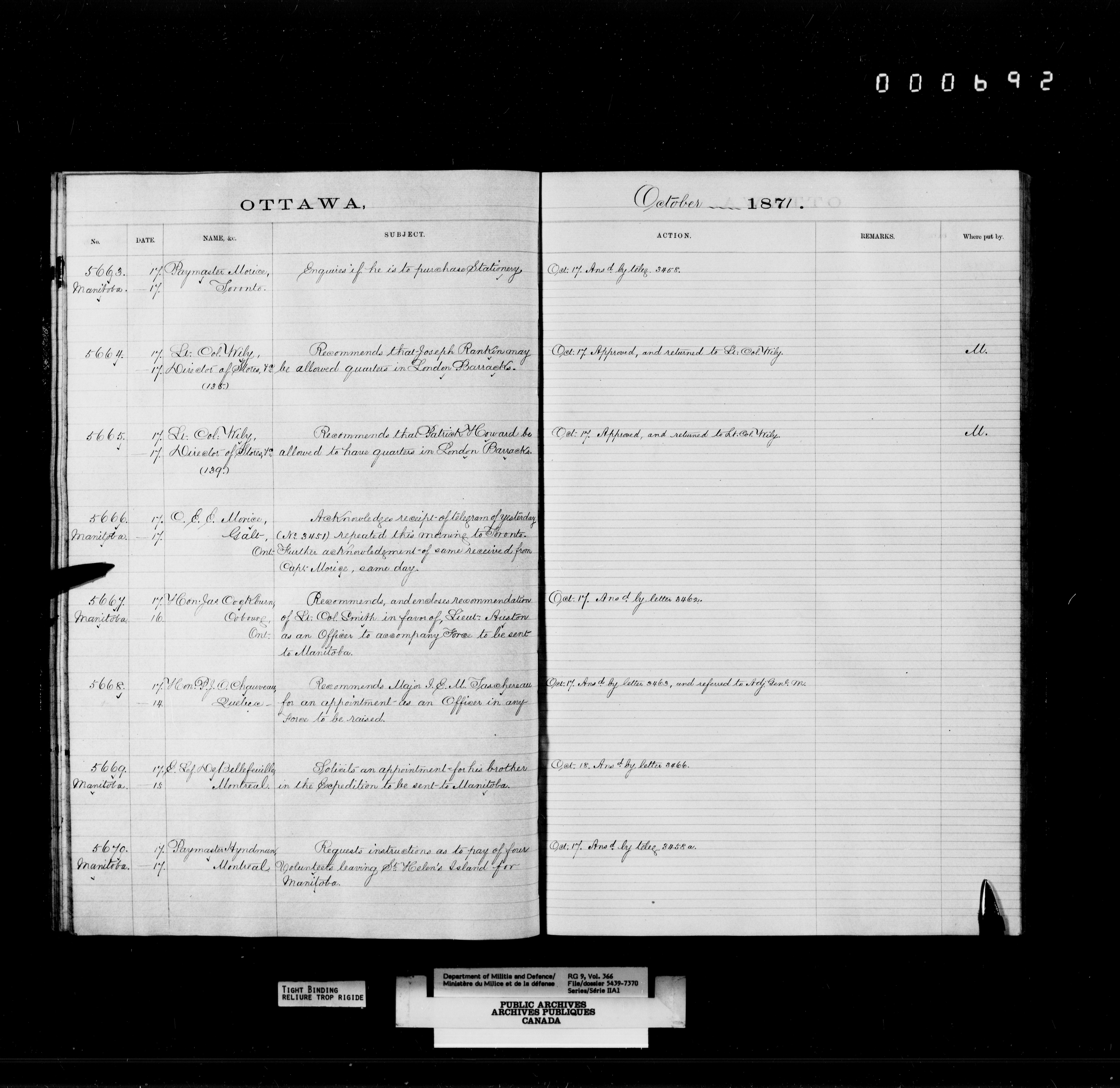 Department of Militia and Defence : Register of correspondence of the Deputy Minister's office, 1867-1872 - 4173