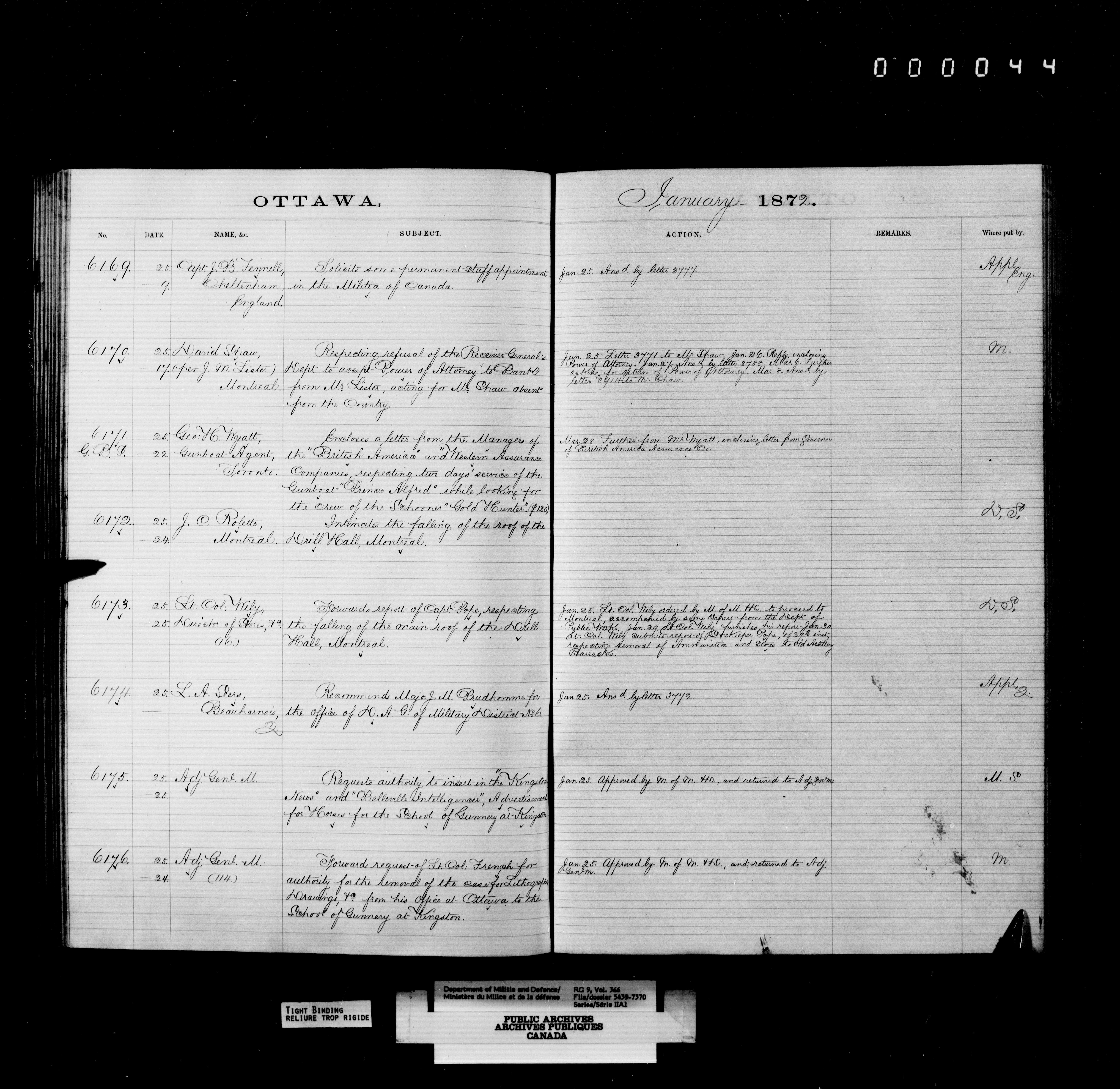 Department of Militia and Defence : Register of correspondence of the Deputy Minister's office, 1871-1875 - 4174