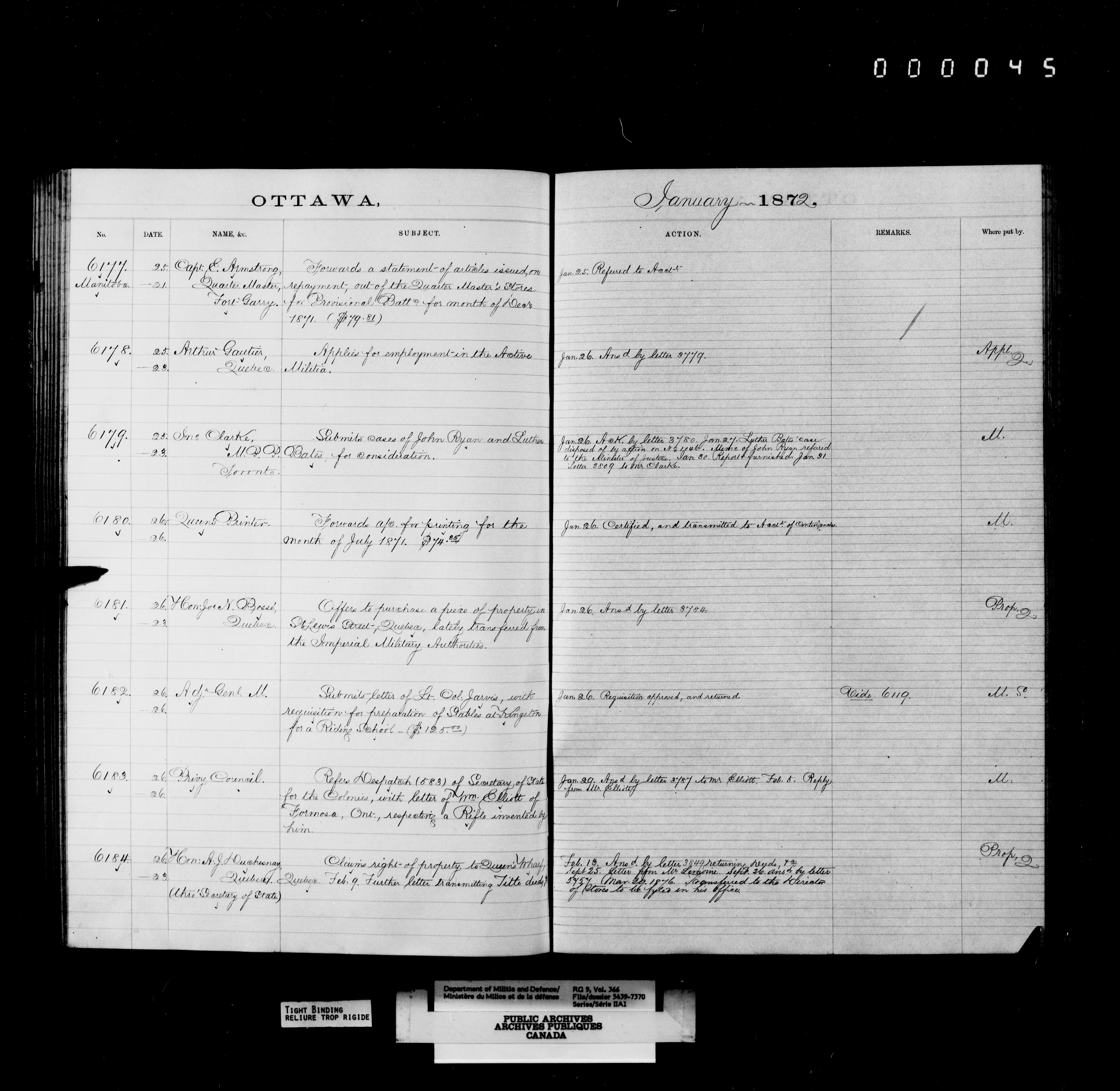 Department of Militia and Defence : Register of correspondence of the Deputy Minister's office, 1871-1875 - 4174