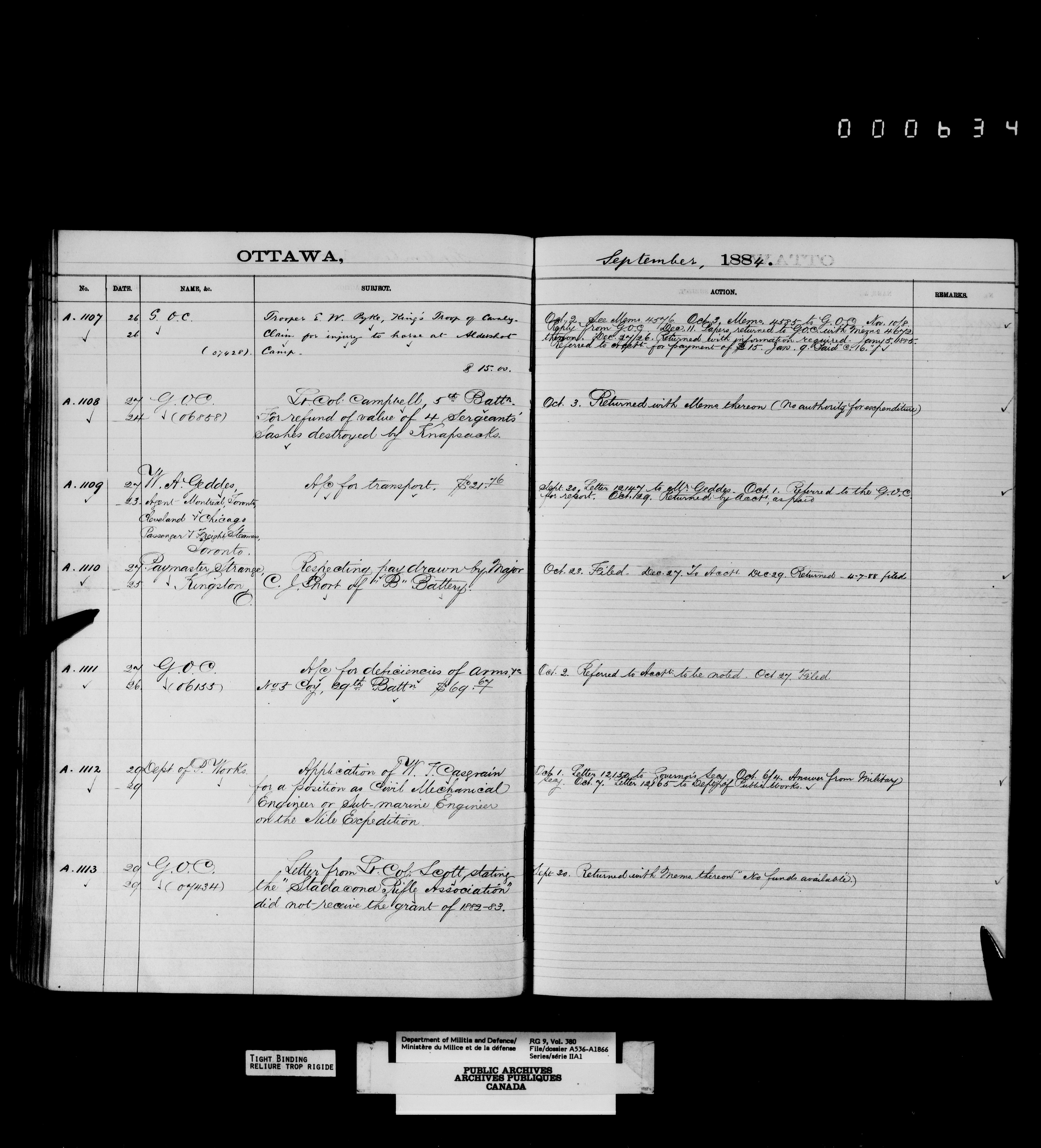 Department of Militia and Defence : Register of correspondence of the Deputy Minister's office, 1880-1885 - 4176