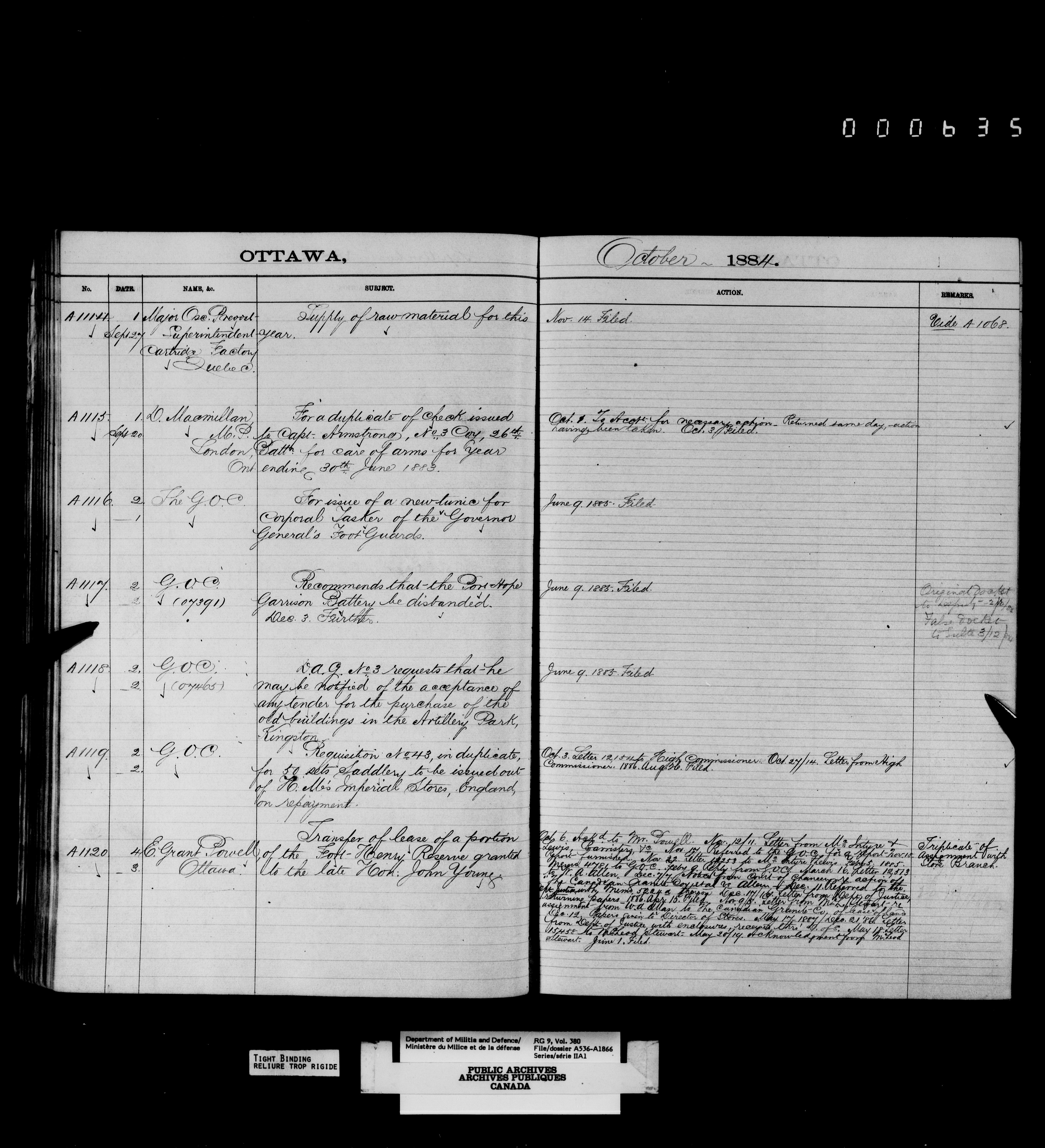 Department of Militia and Defence : Register of correspondence of the Deputy Minister's office, 1880-1885 - 4176