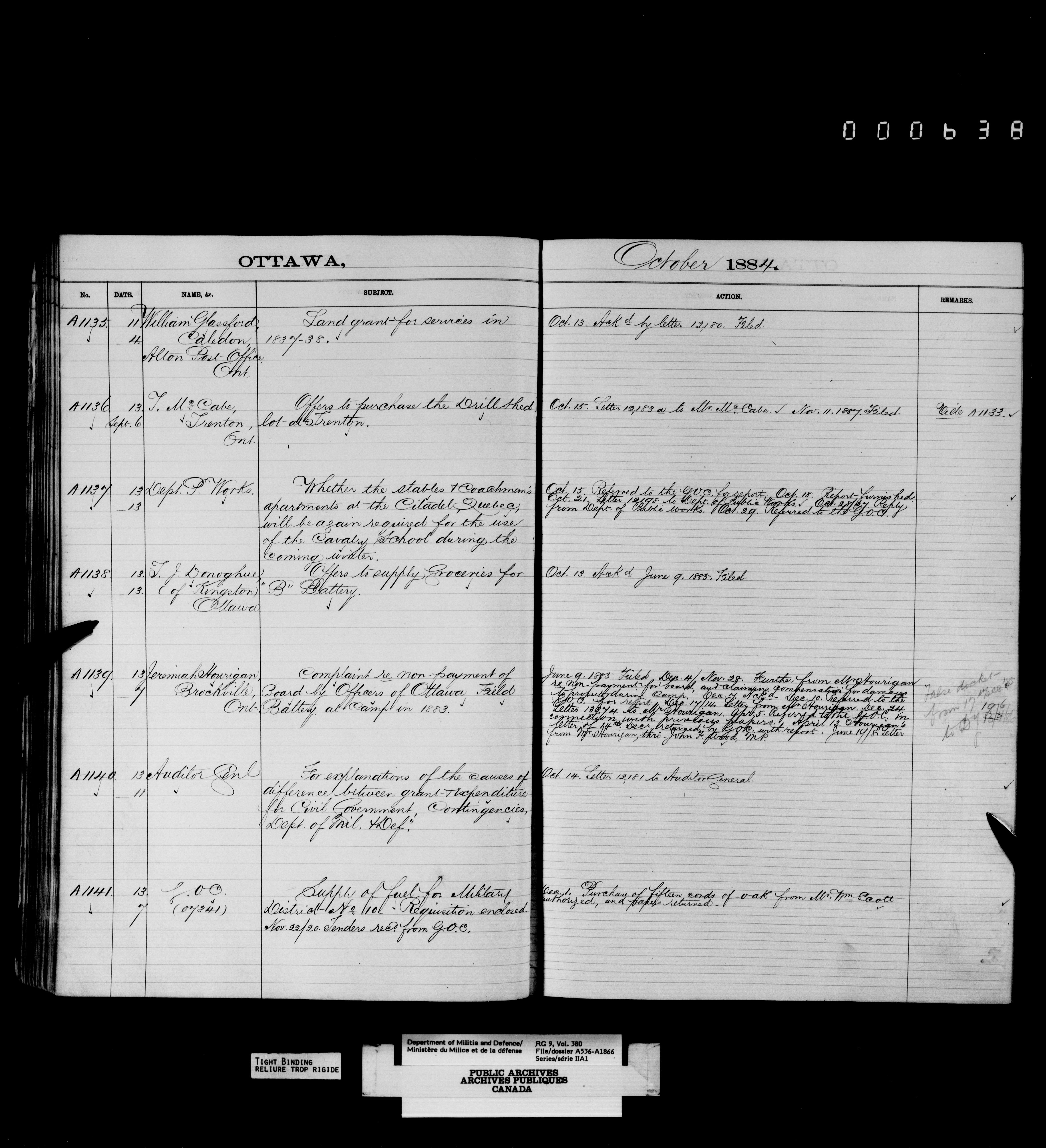 Department of Militia and Defence : Correspondence of the Deputy Minister's office, 1867-1903 : T-4176