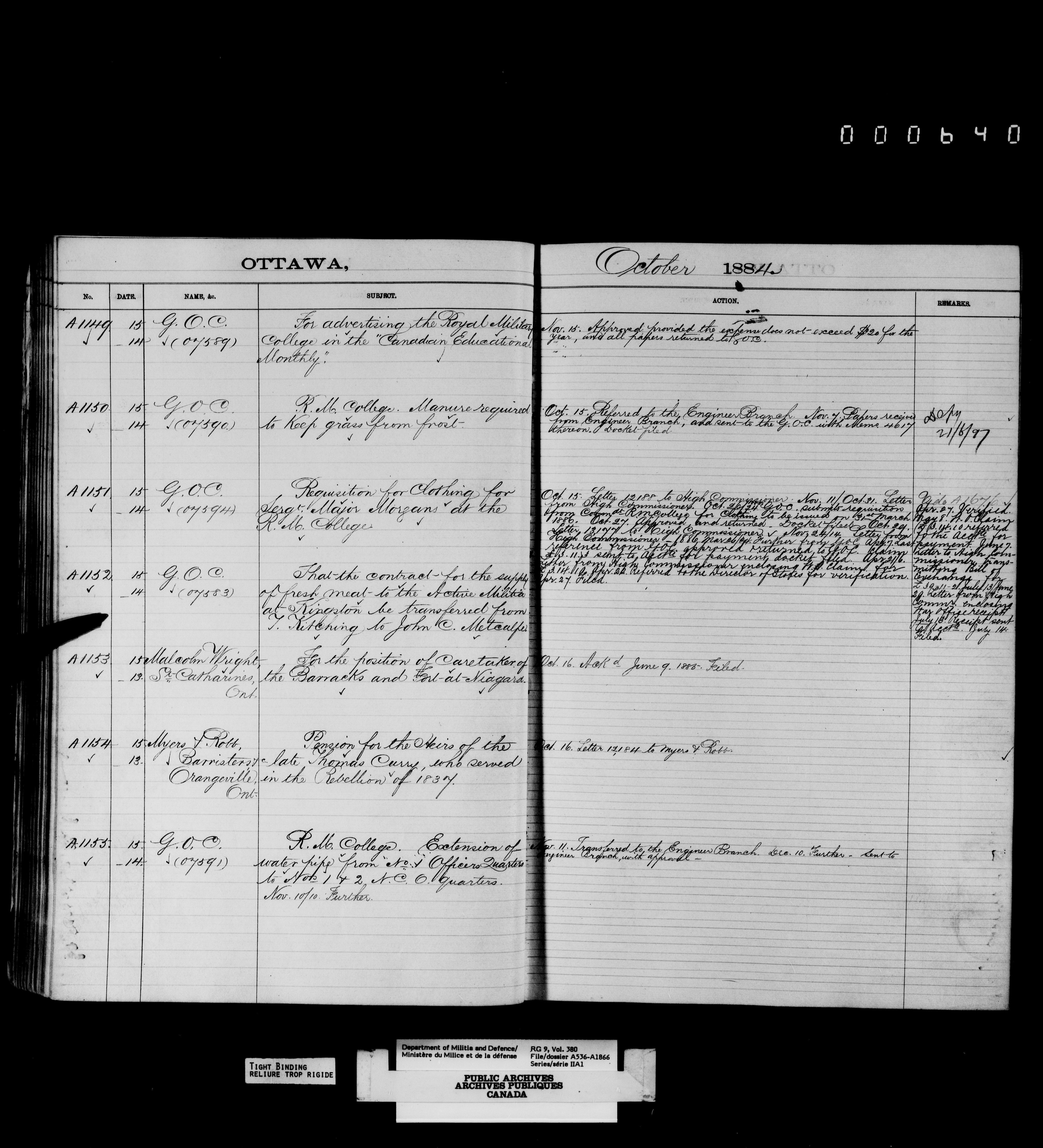 Department of Militia and Defence : Register of correspondence of the Deputy Minister's office, 1880-1885 - 4176