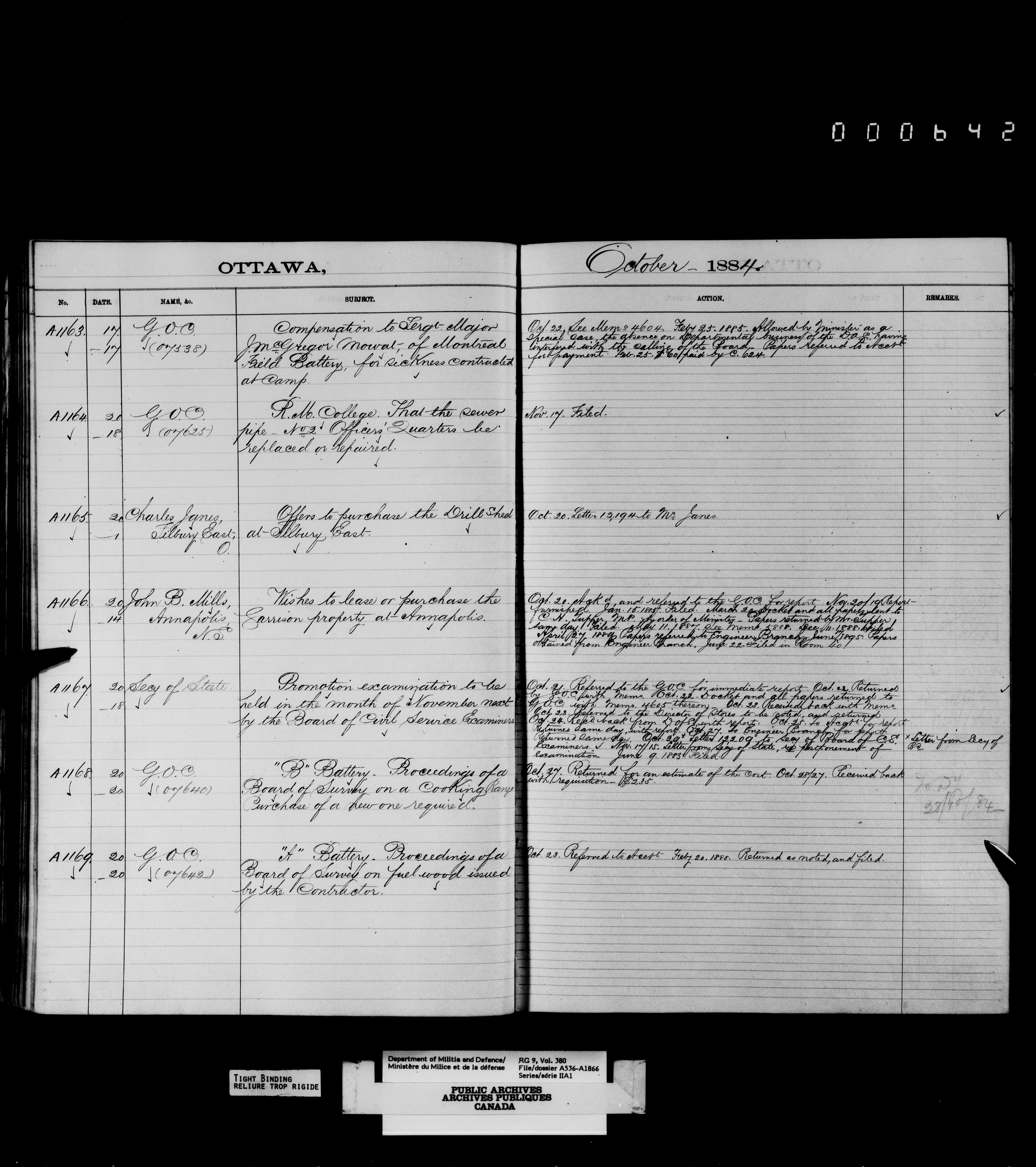 Department of Militia and Defence : Register of correspondence of the Deputy Minister's office, 1880-1885 - 4176