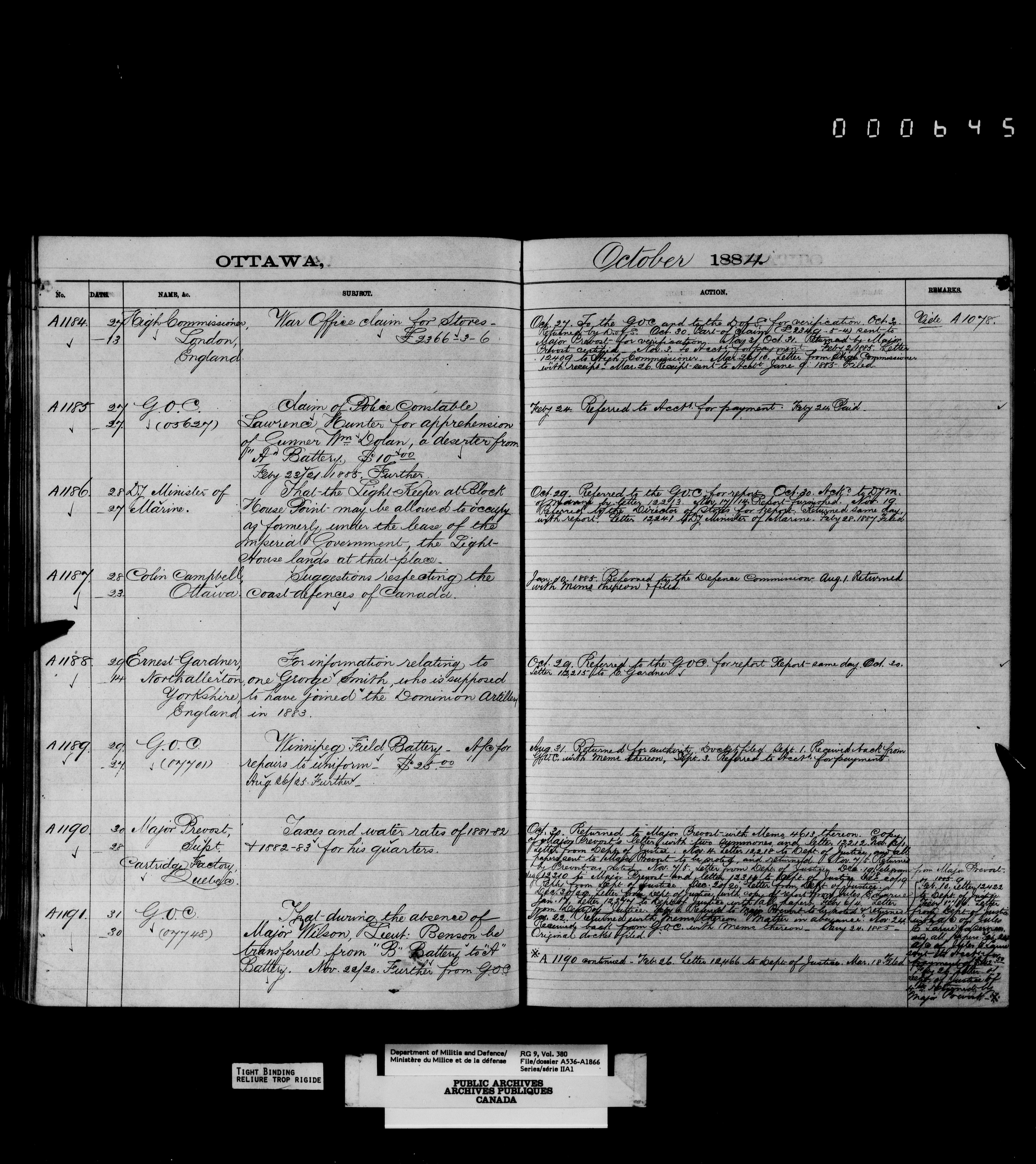 Department of Militia and Defence : Register of correspondence of the Deputy Minister's office, 1880-1885 - 4176