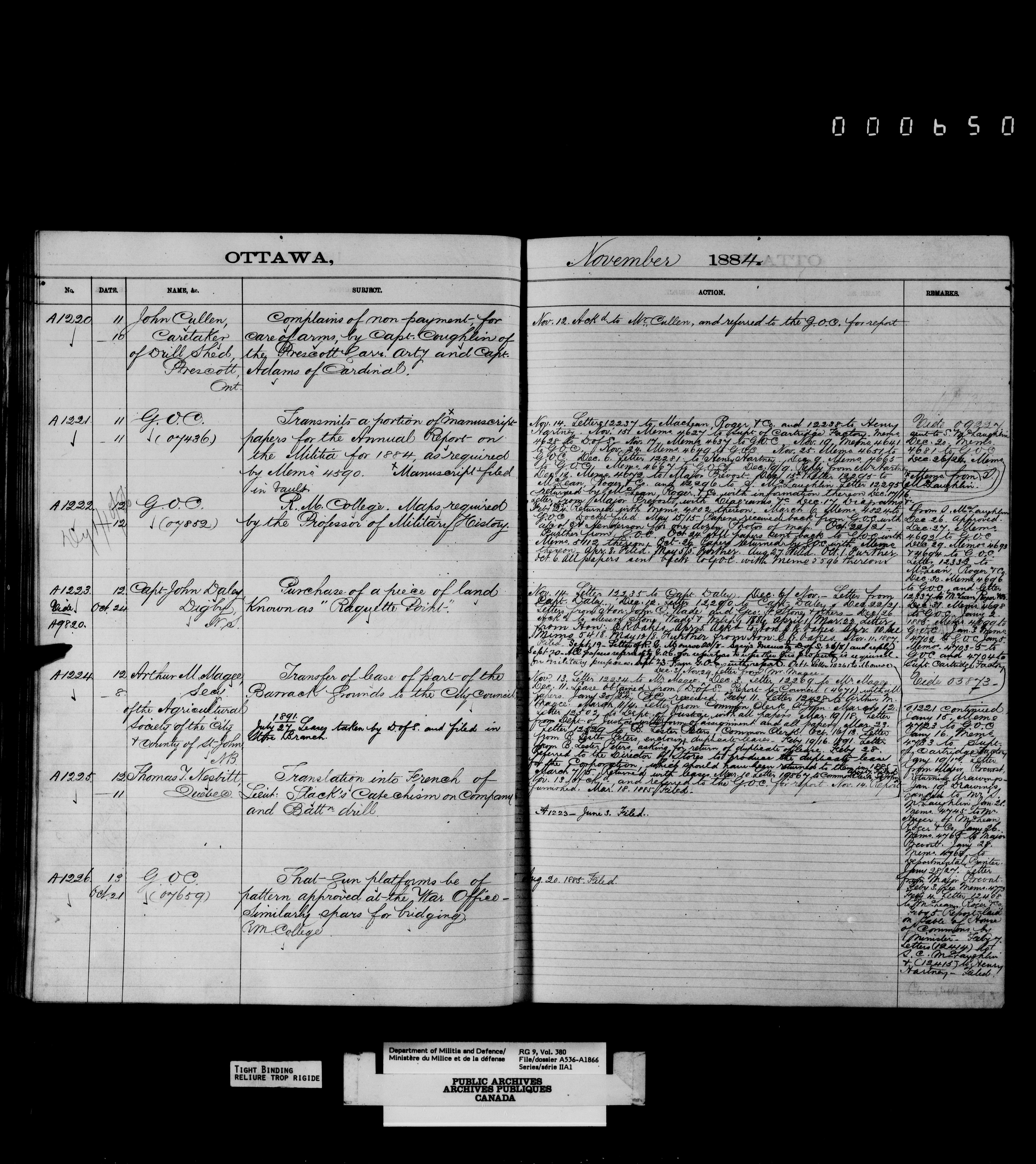 Department of Militia and Defence : Register of correspondence of the Deputy Minister's office, 1880-1885 - 4176