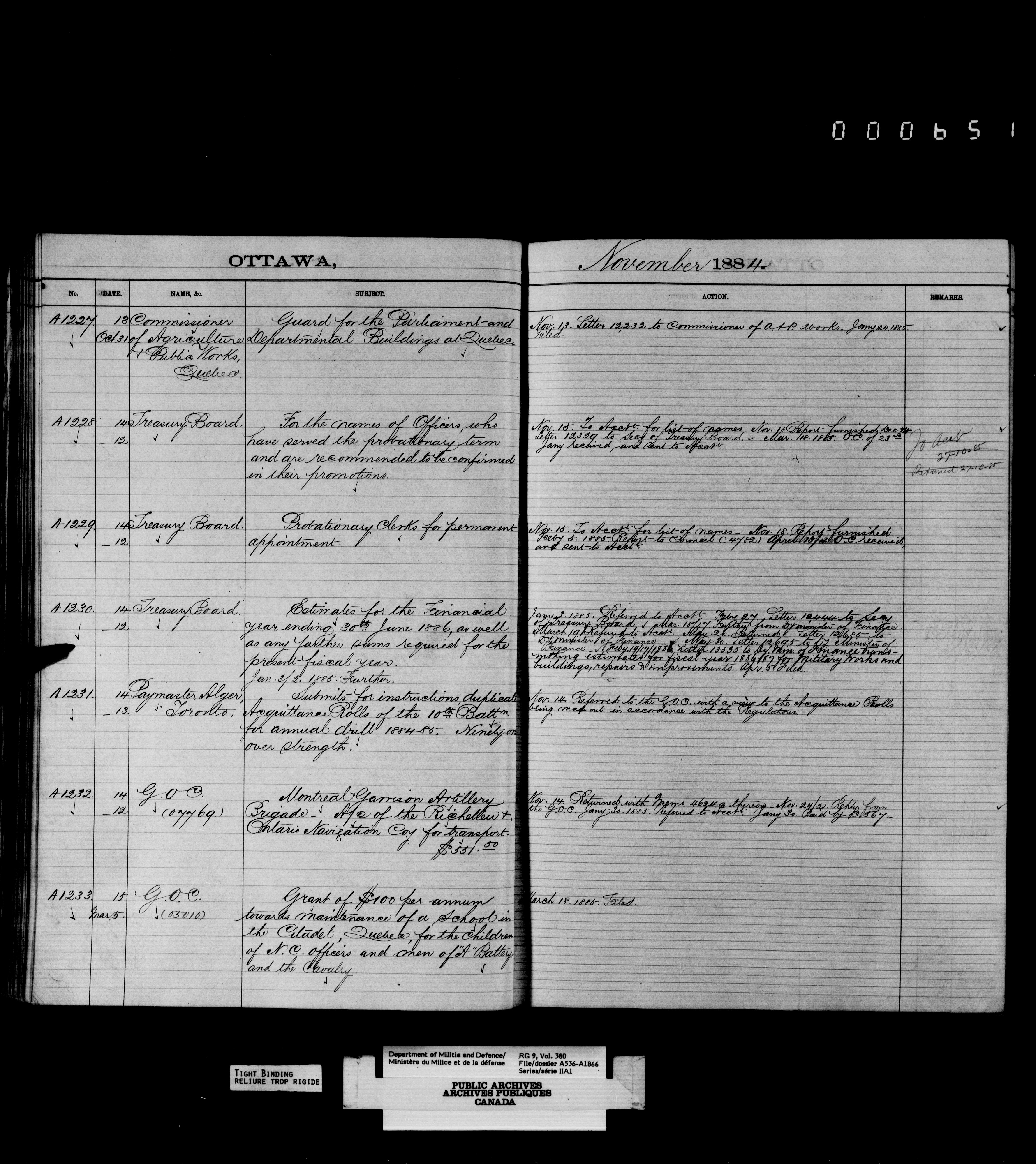 Department of Militia and Defence : Register of correspondence of the Deputy Minister's office, 1880-1885 - 4176