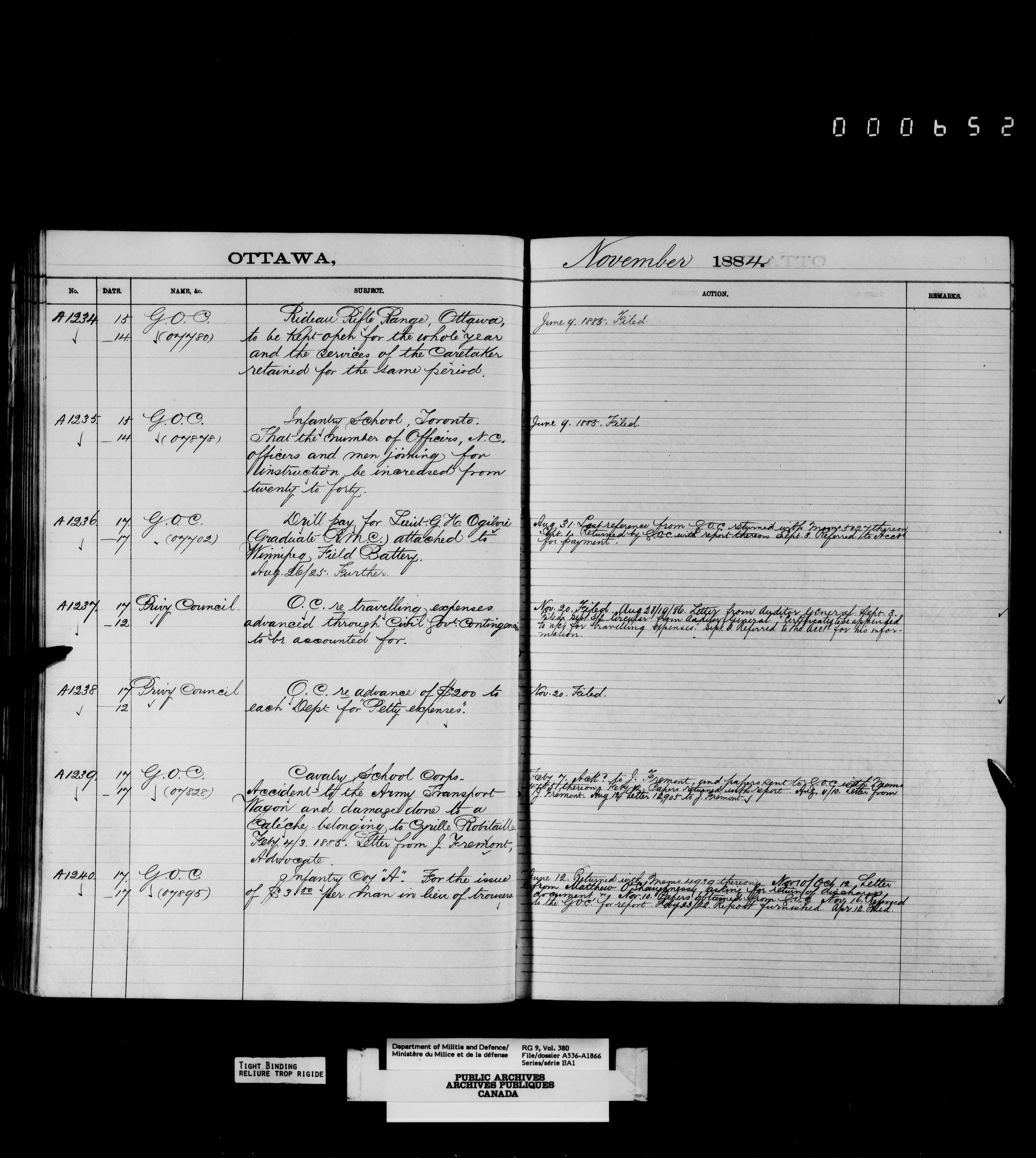 Department of Militia and Defence : Register of correspondence of the Deputy Minister's office, 1880-1885 - 4176