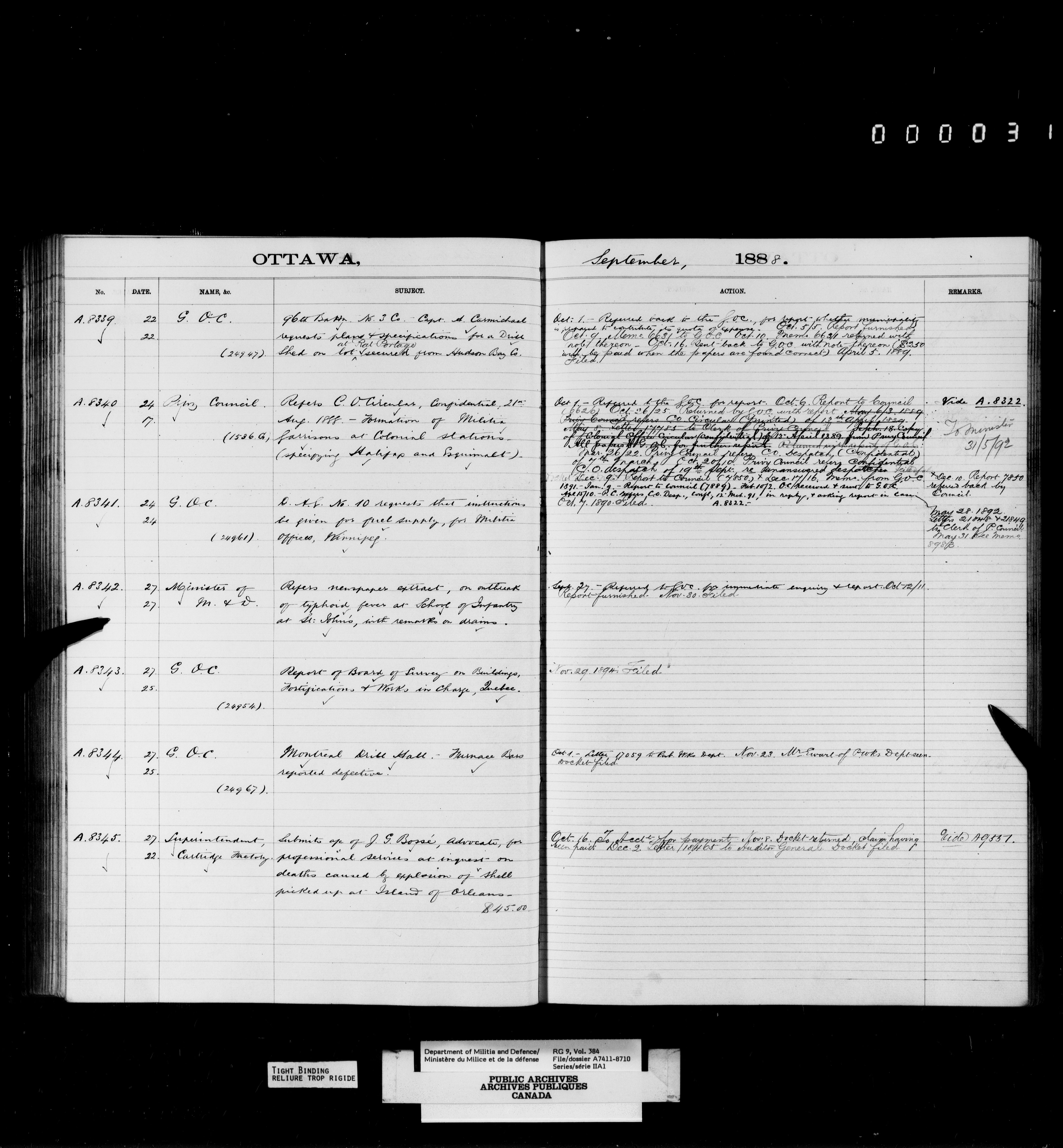 Department of Militia and Defence : Register of correspondence of the Deputy Minister's office, 1889-1892 - 4178
