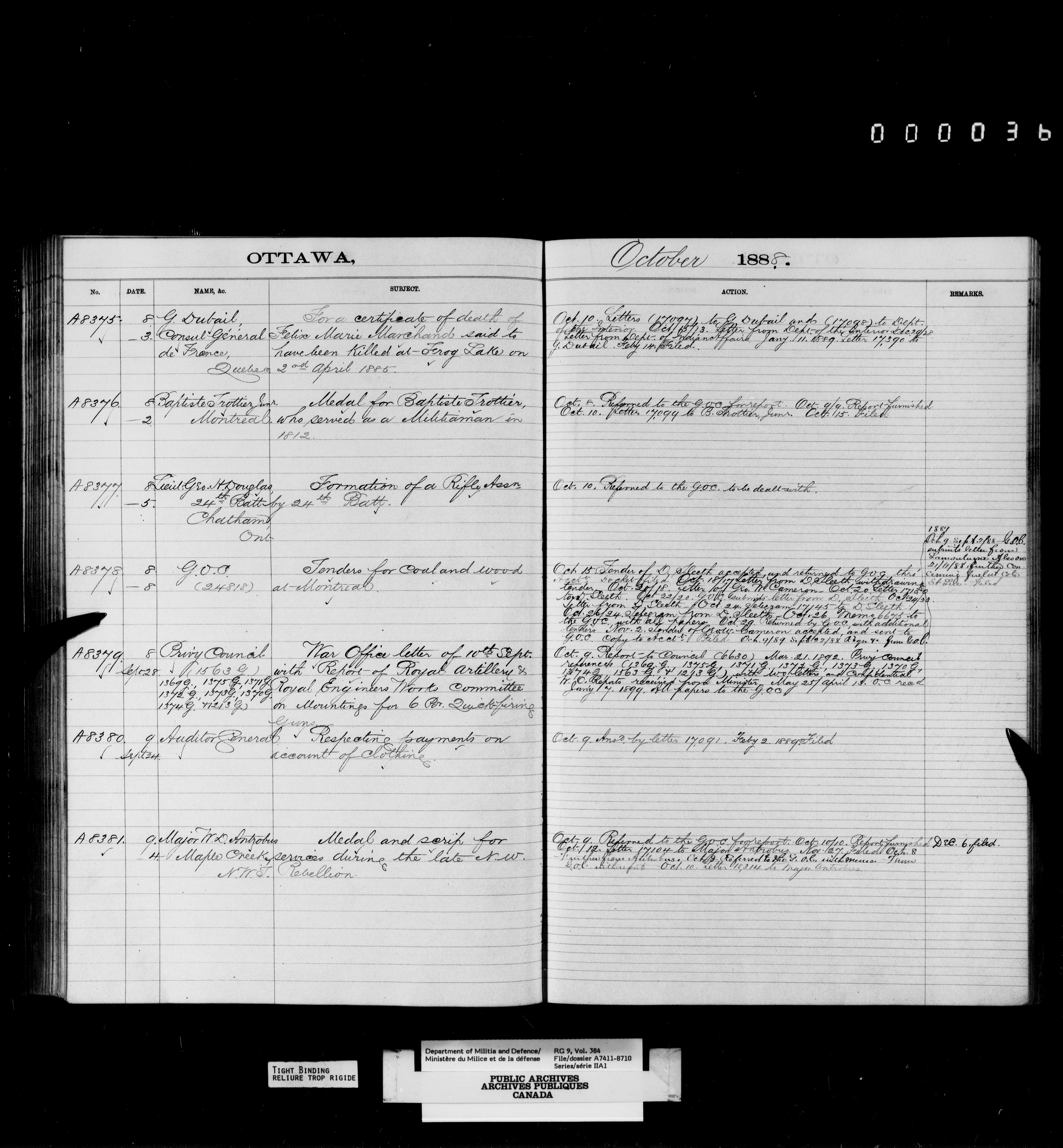 Department of Militia and Defence : Register of correspondence of the Deputy Minister's office, 1889-1892 - 4178
