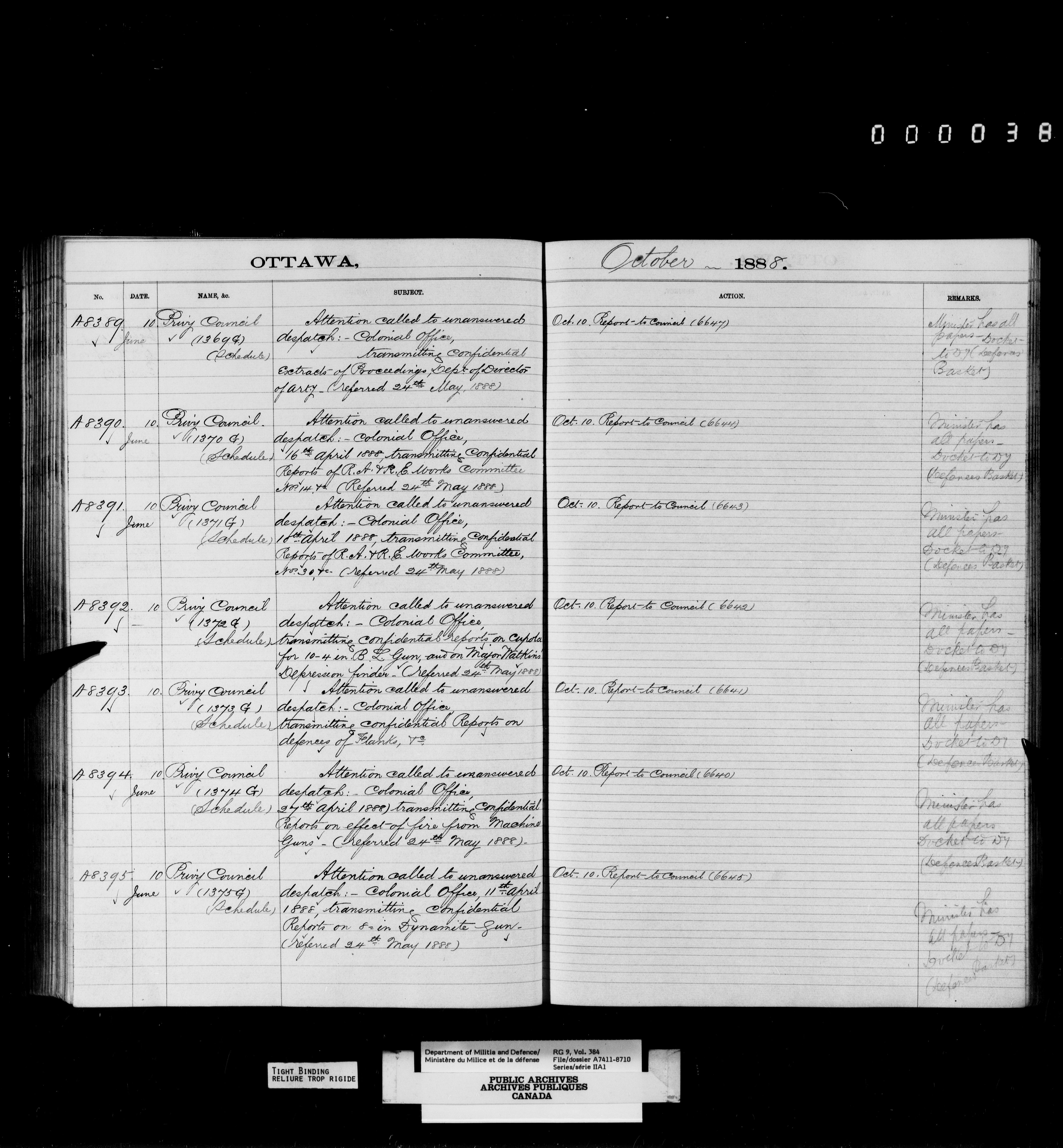 Department of Militia and Defence : Register of correspondence of the Deputy Minister's office, 1889-1892 - 4178