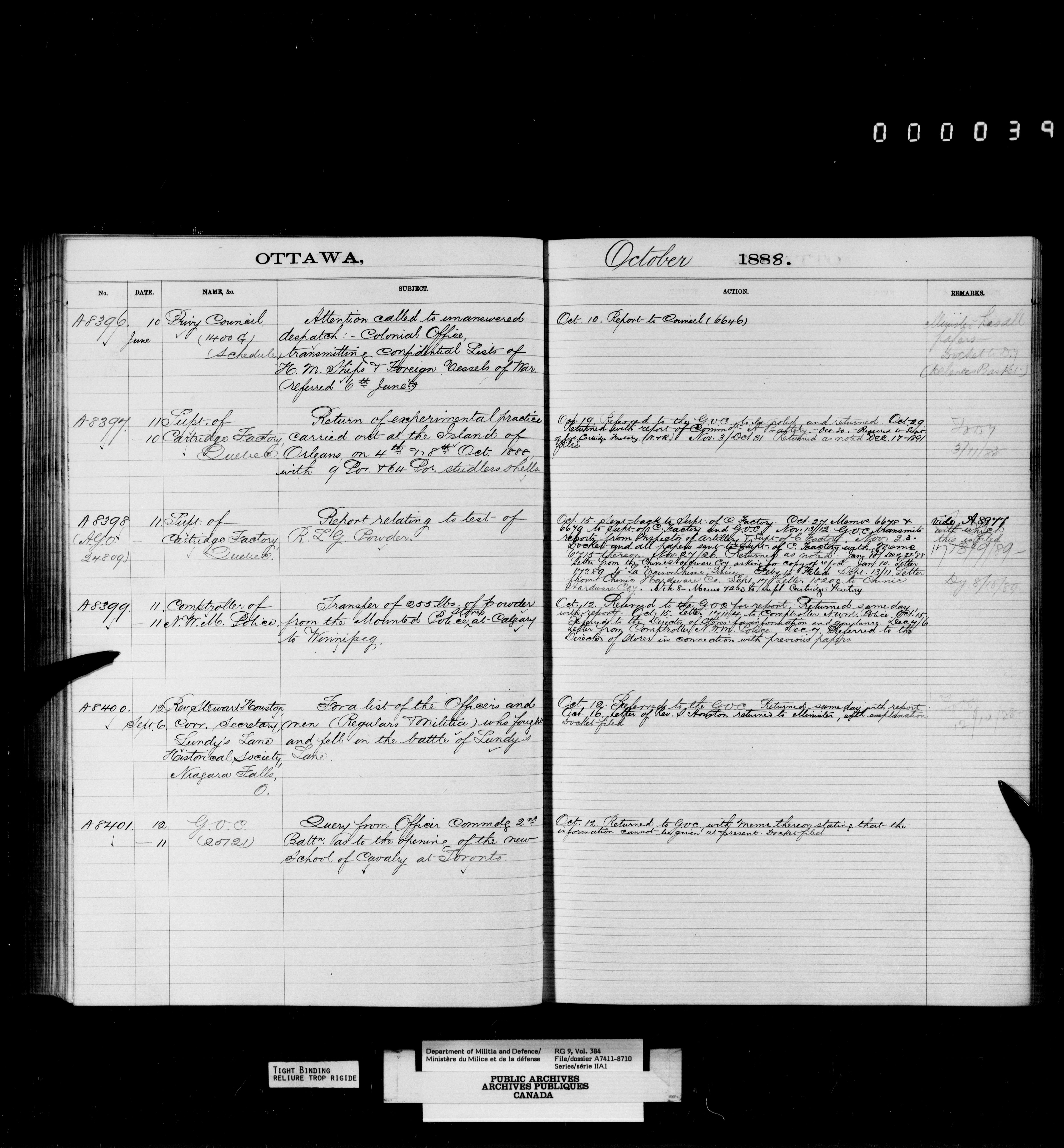 Department of Militia and Defence : Register of correspondence of the Deputy Minister's office, 1889-1892 - 4178