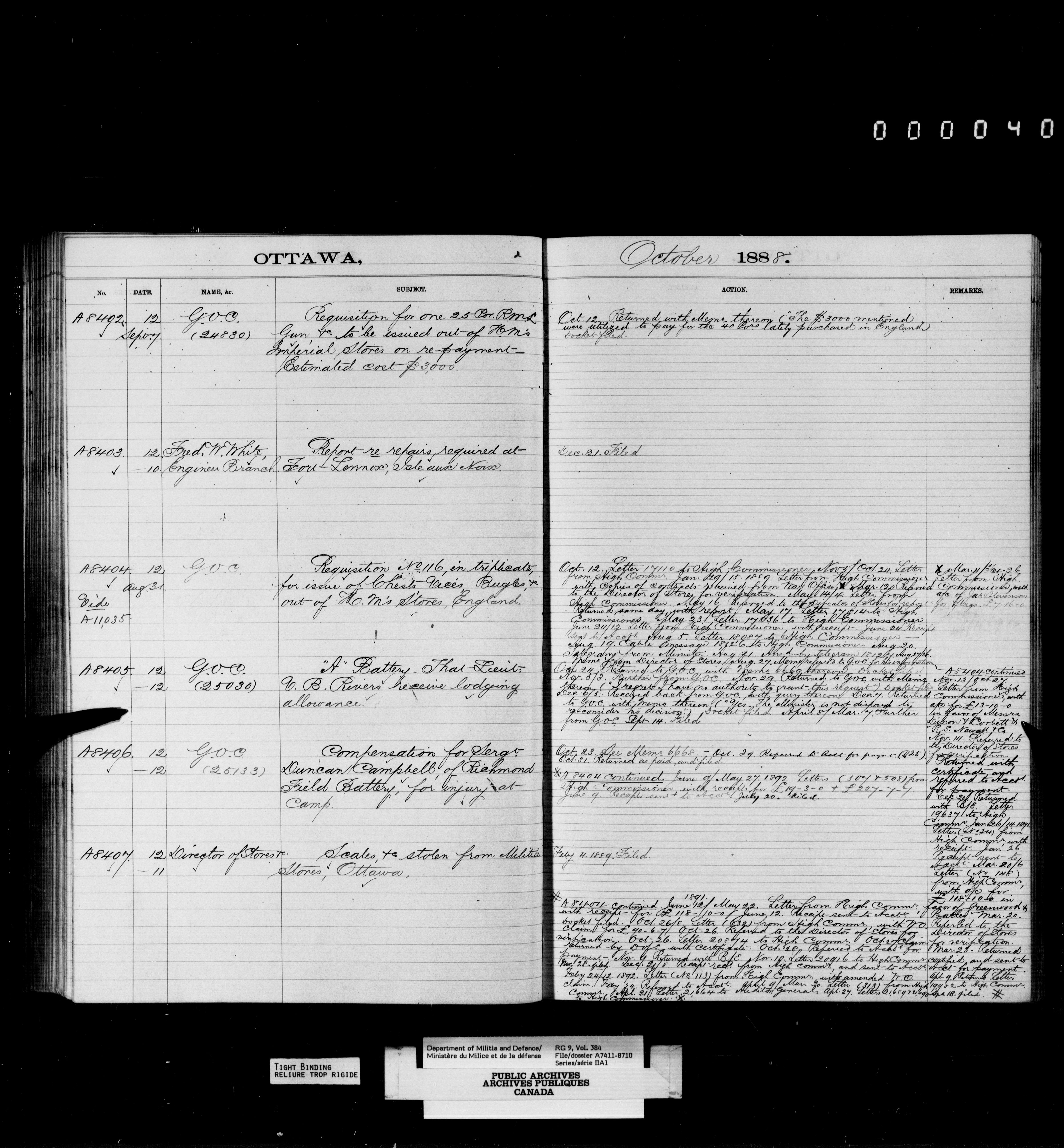 Department of Militia and Defence : Register of correspondence of the Deputy Minister's office, 1889-1892 - 4178