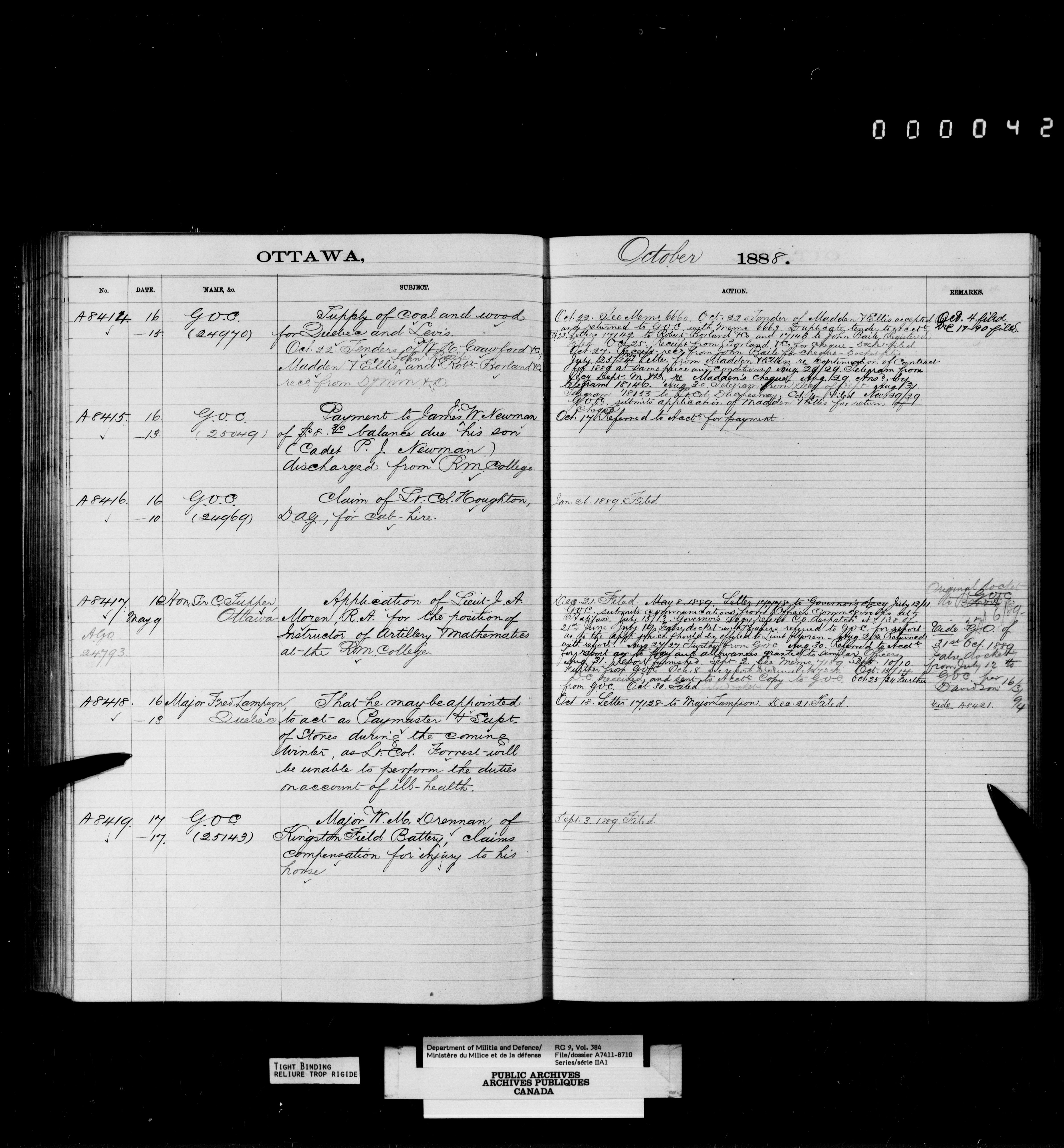 Department of Militia and Defence : Register of correspondence of the Deputy Minister's office, 1889-1892 - 4178