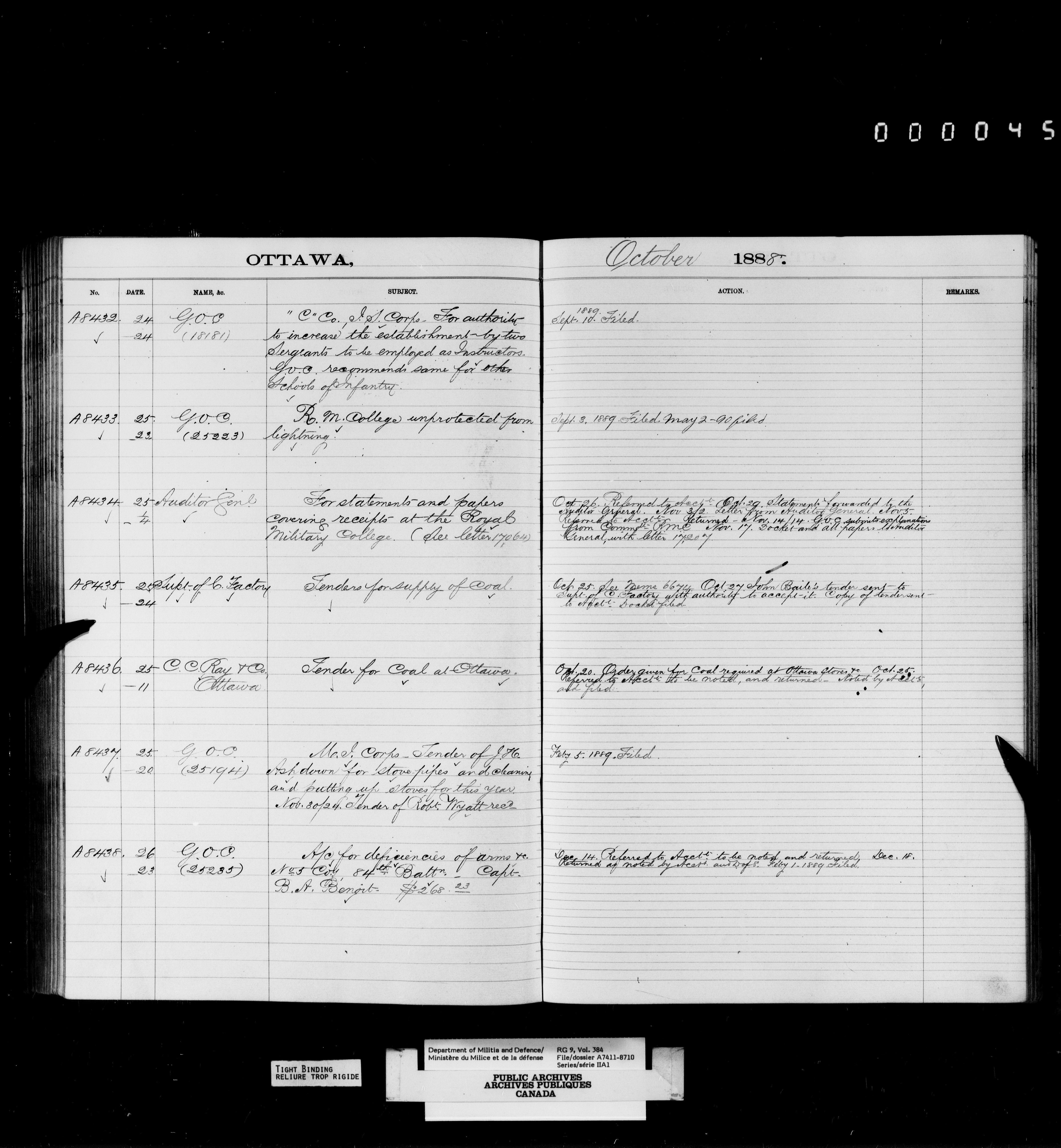 Department of Militia and Defence : Register of correspondence of the Deputy Minister's office, 1889-1892 - 4178